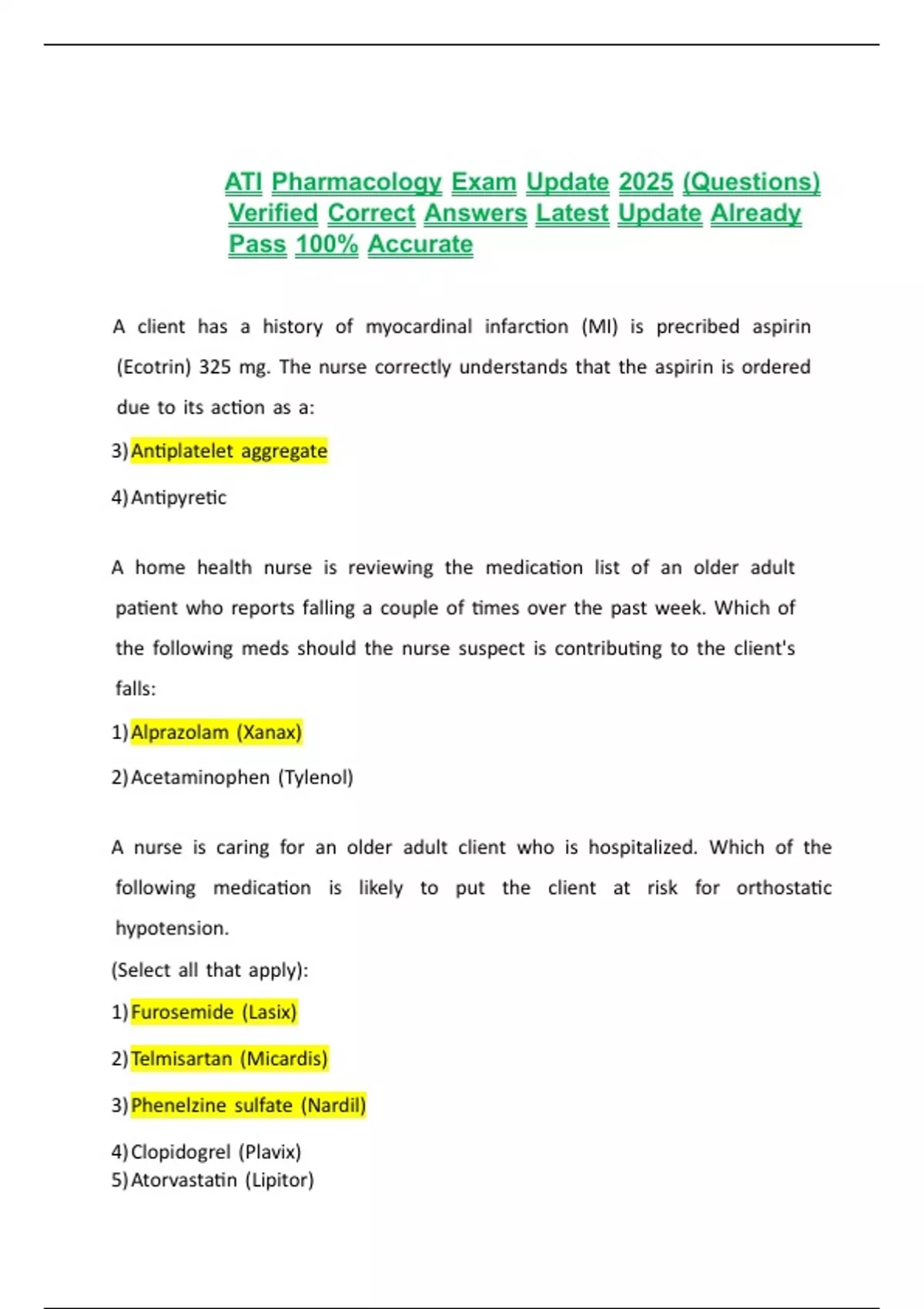 ATI Pharmacology Exam Update 2025 (Questions) Verified Correct Answers Latest Update Already Pass 100% AccurateATI Pharmacology Exam Update 2025 (Questions) Verified Correct Answers Latest Update Already Pass 100% AccurateATI Pharmacology Exam Update 2025 (Questions) Verified Correct Answers Latest Update Already Pass 100% AccurateATI Pharmacology Exam Update 2025 (Questions) Verified Correct Answers Latest Update Already Pass 100% AccurateATI Pharmacology Exam Update 2025 (Questions) Verified Correct Answers Latest Update Already Pass 100% AccurateATI Pharmacology Exam Update 2025 (Questions) Verified Correct Answers Latest Update Already Pass 100% AccurateATI Pharmacology Exam Update 2025 (Questions) Verified Correct Answers Latest Update Already Pass 100% Accurate