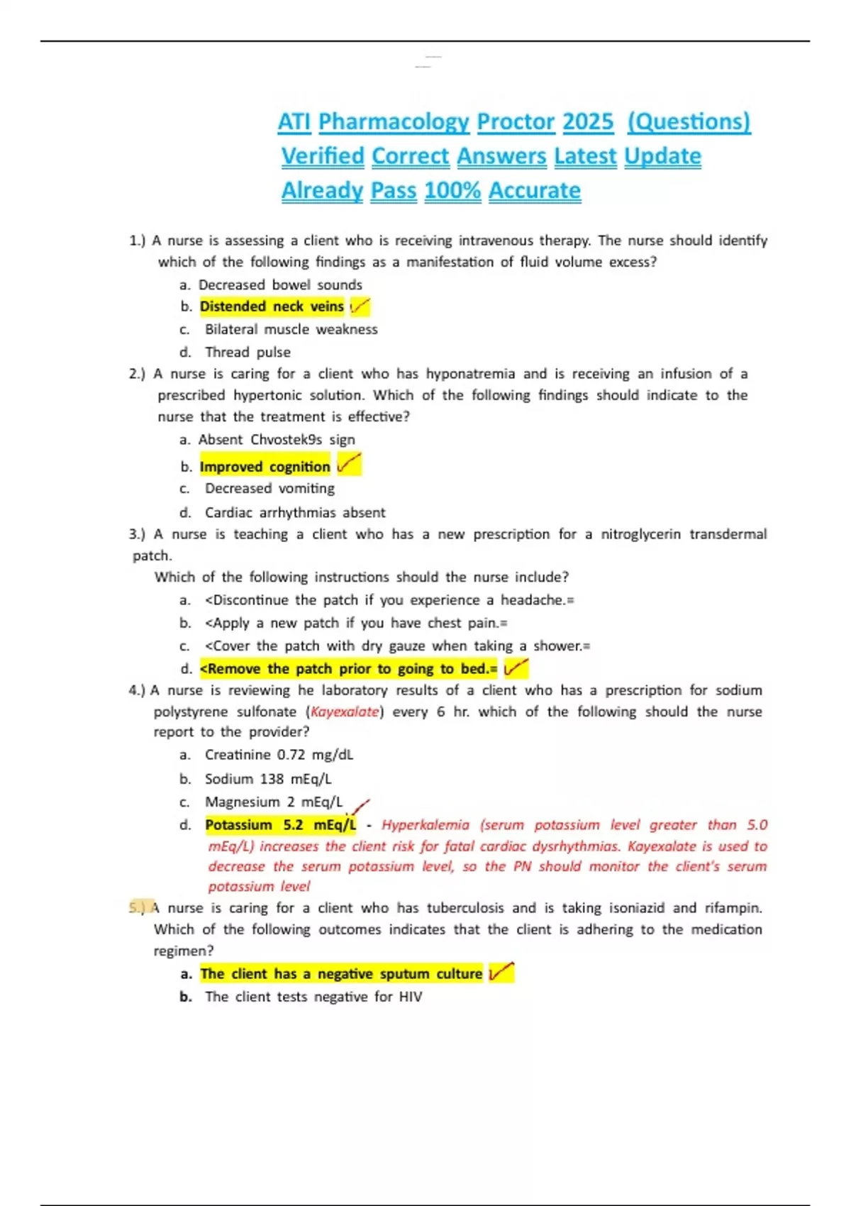 ATI Pharmacology Proctor 2025 (Questions)
