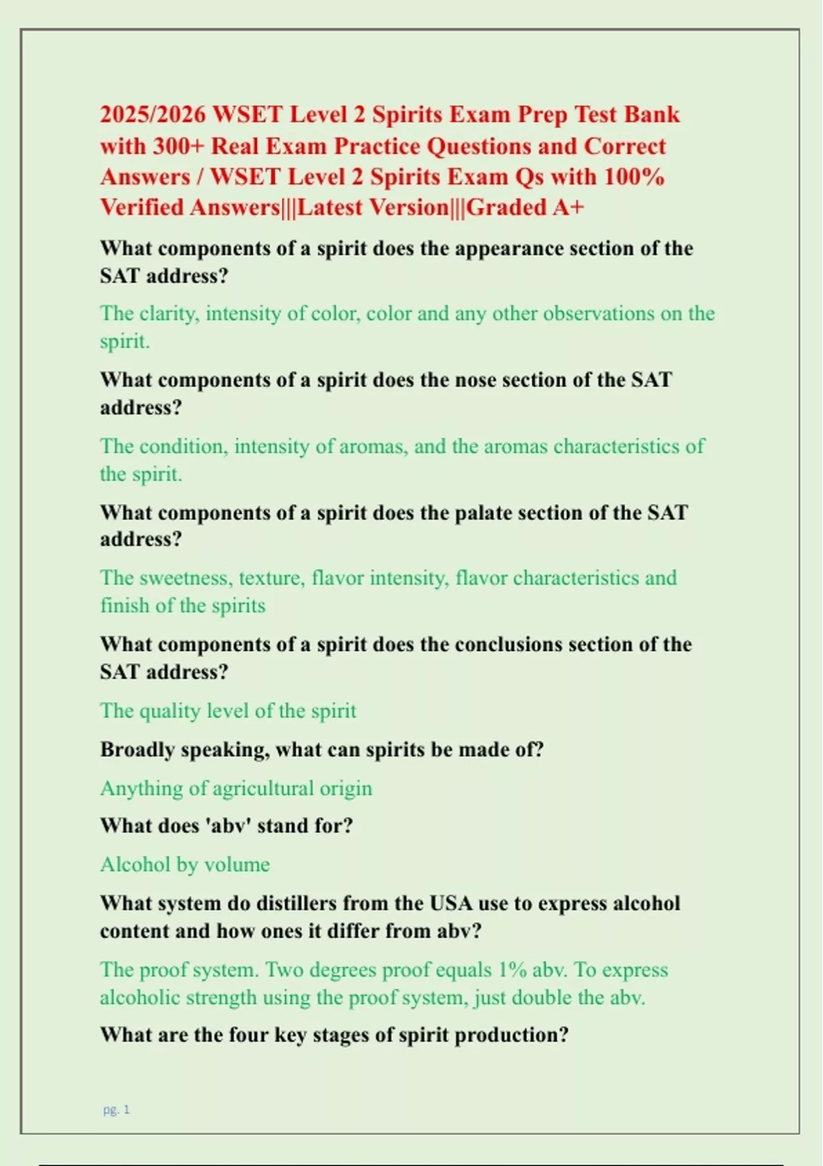 Answers / WSET Level 2 Spirits Exam Qs with 100%