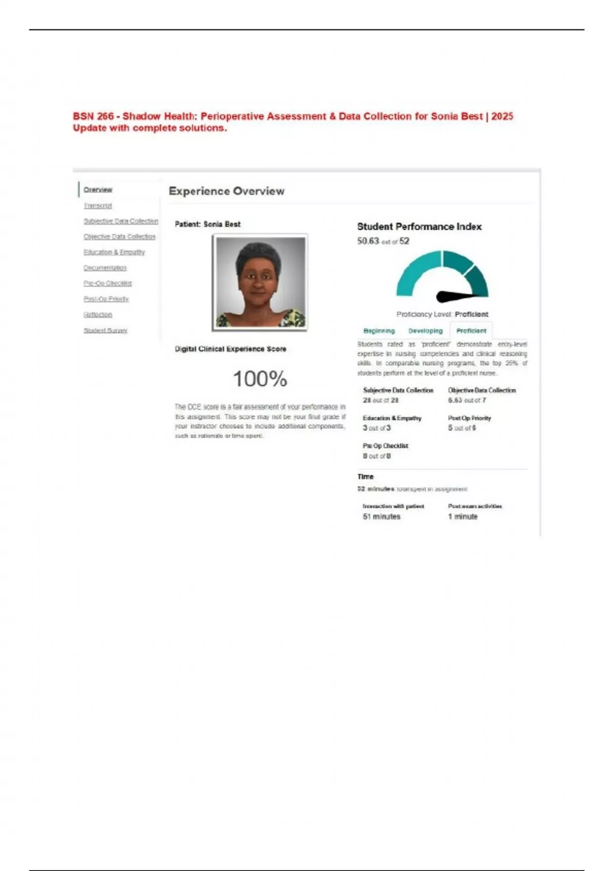 BSN 266 - Shadow Health: Perioperative Assessment & Data Collection for Sonia Best | 2025 Update with complete solutions.