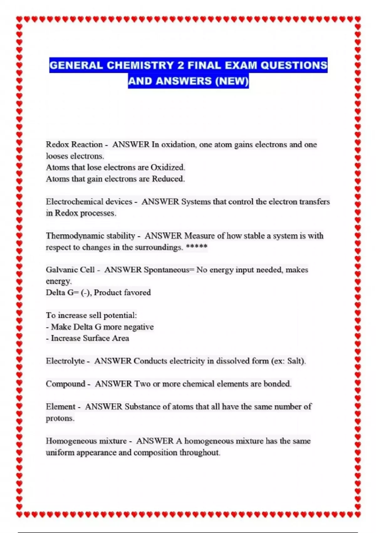 GENERAL CHEMISTRY 2 FINAL EXAM QUESTIONS AND ANSWERS (NEW)