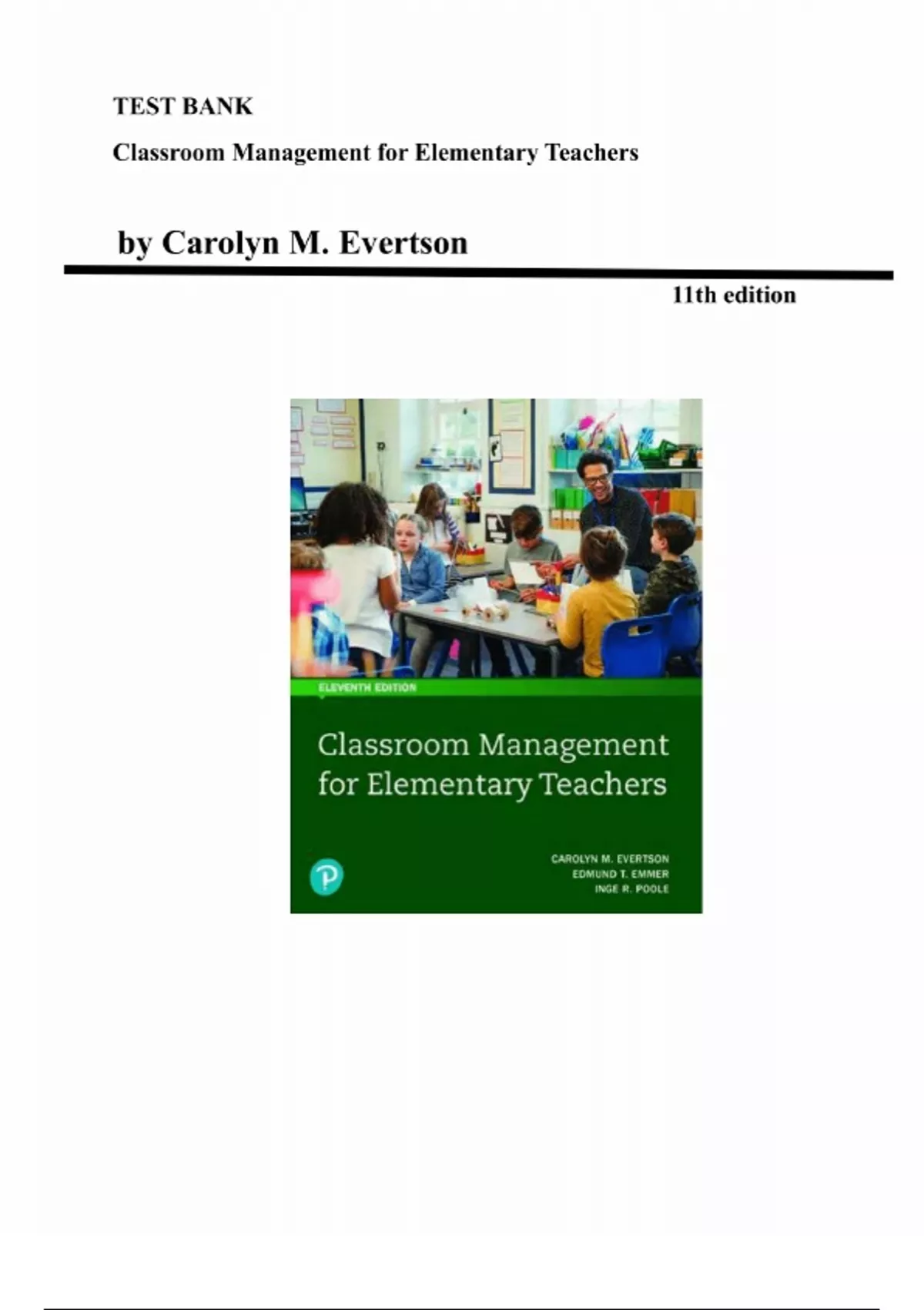 Test Bank for Classroom Management for Elementary Teachers, 11th edition by Carolyn M. Evertson, Chapter 1-12
