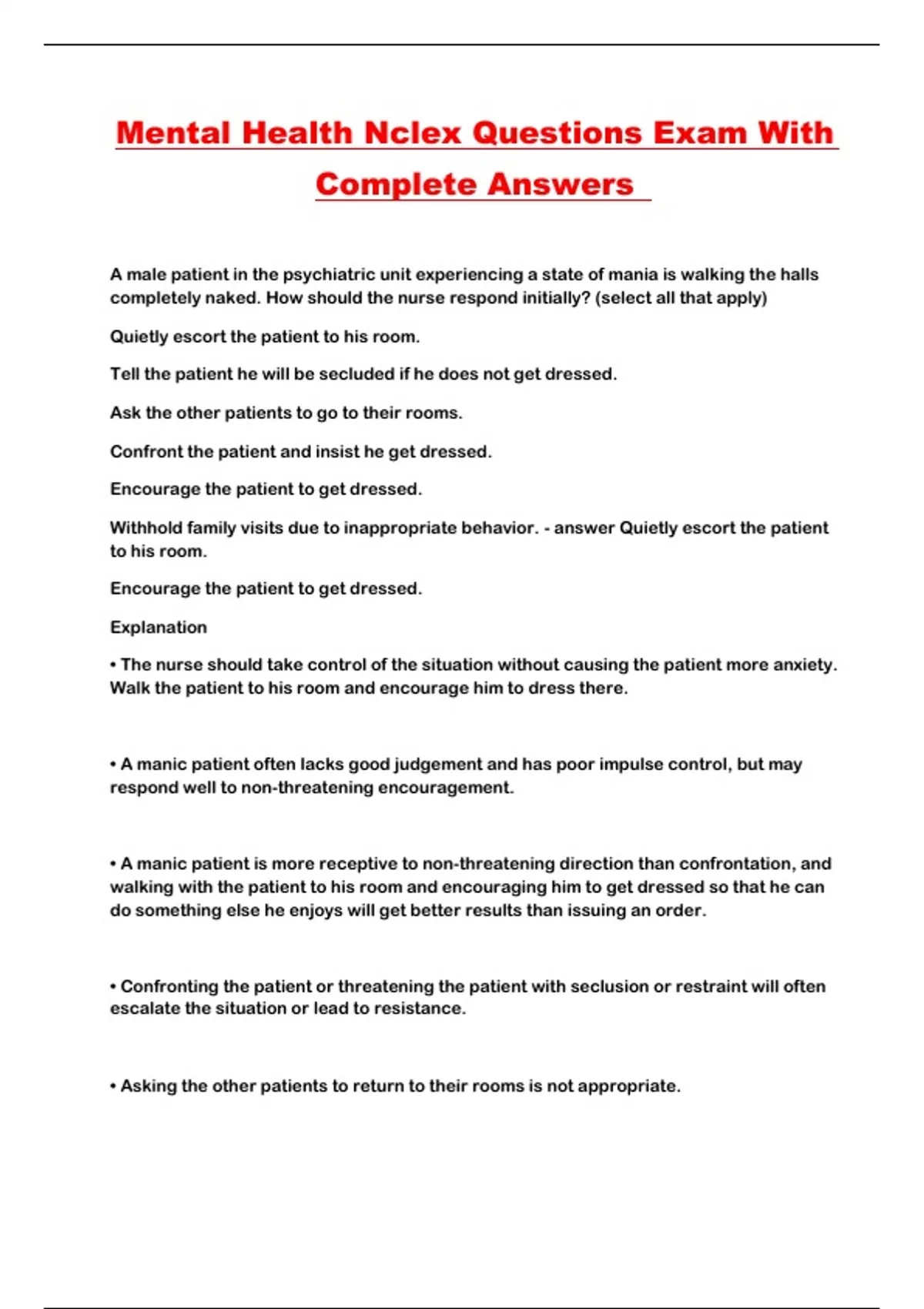 Mental Health Nclex Questions Exam With