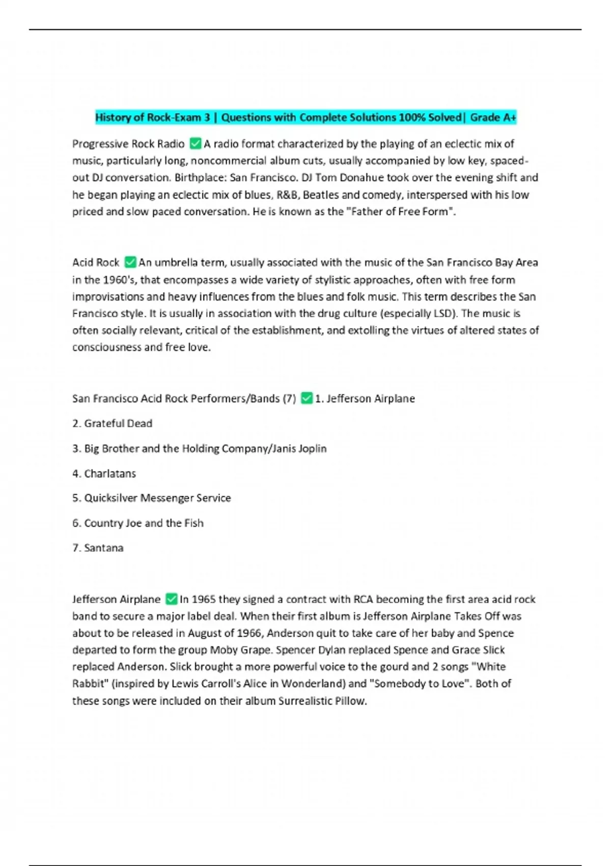 History of Rock-Exam 3 | Questions with Complete Solutions 100% Solved| Grade A+