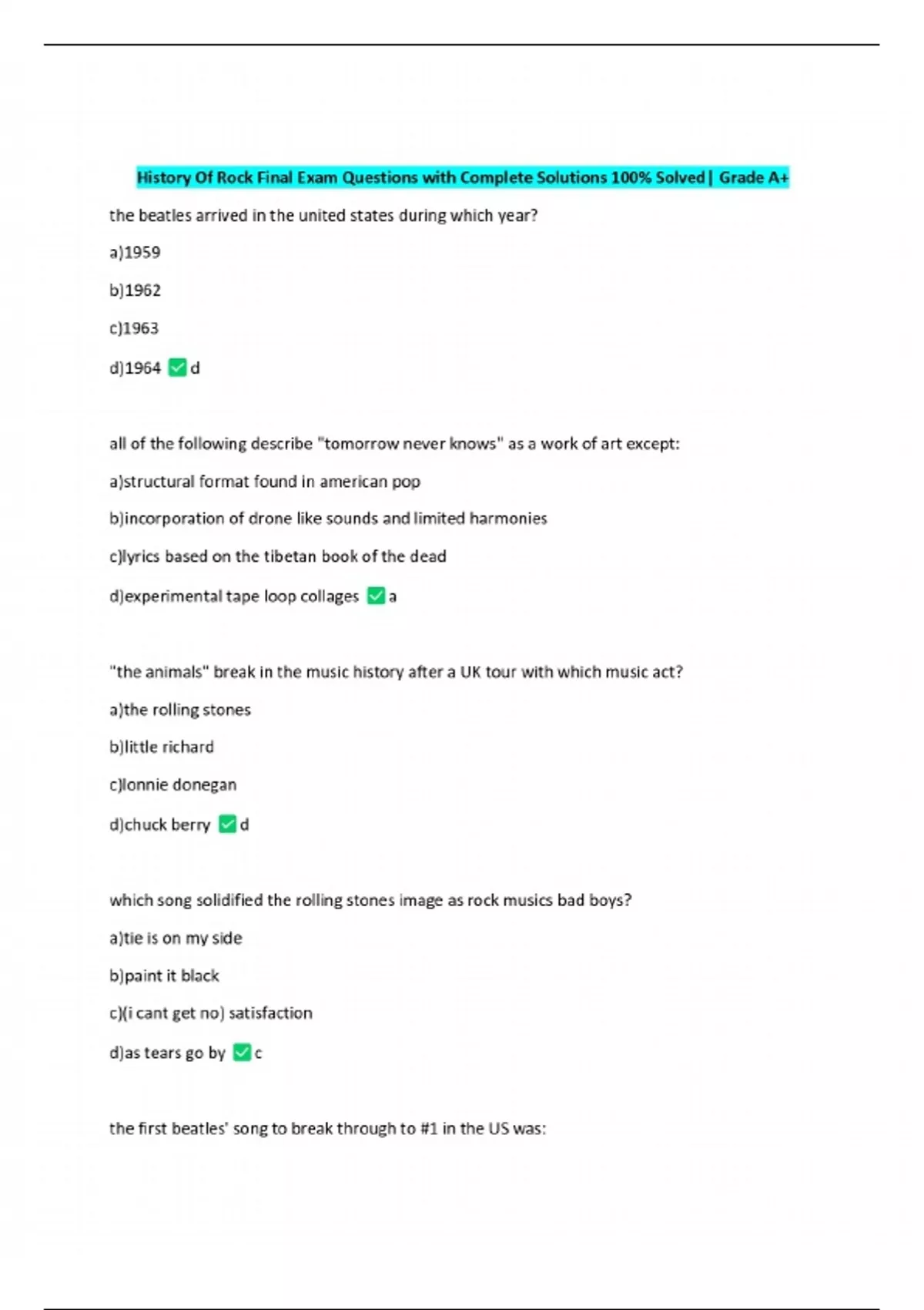 history of rock final exam questions with complete