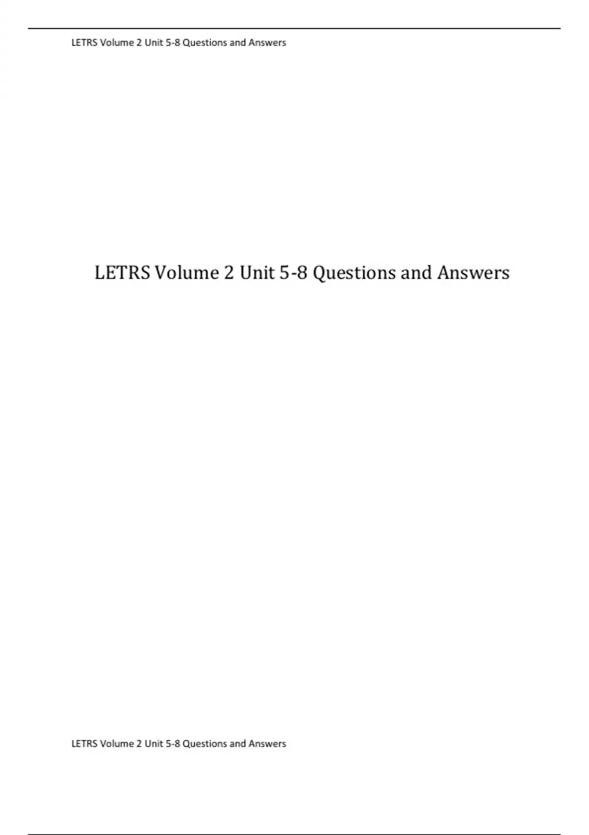LETRS Volume 2 Unit 5-8 Questions and Verified Answers 100% Correct