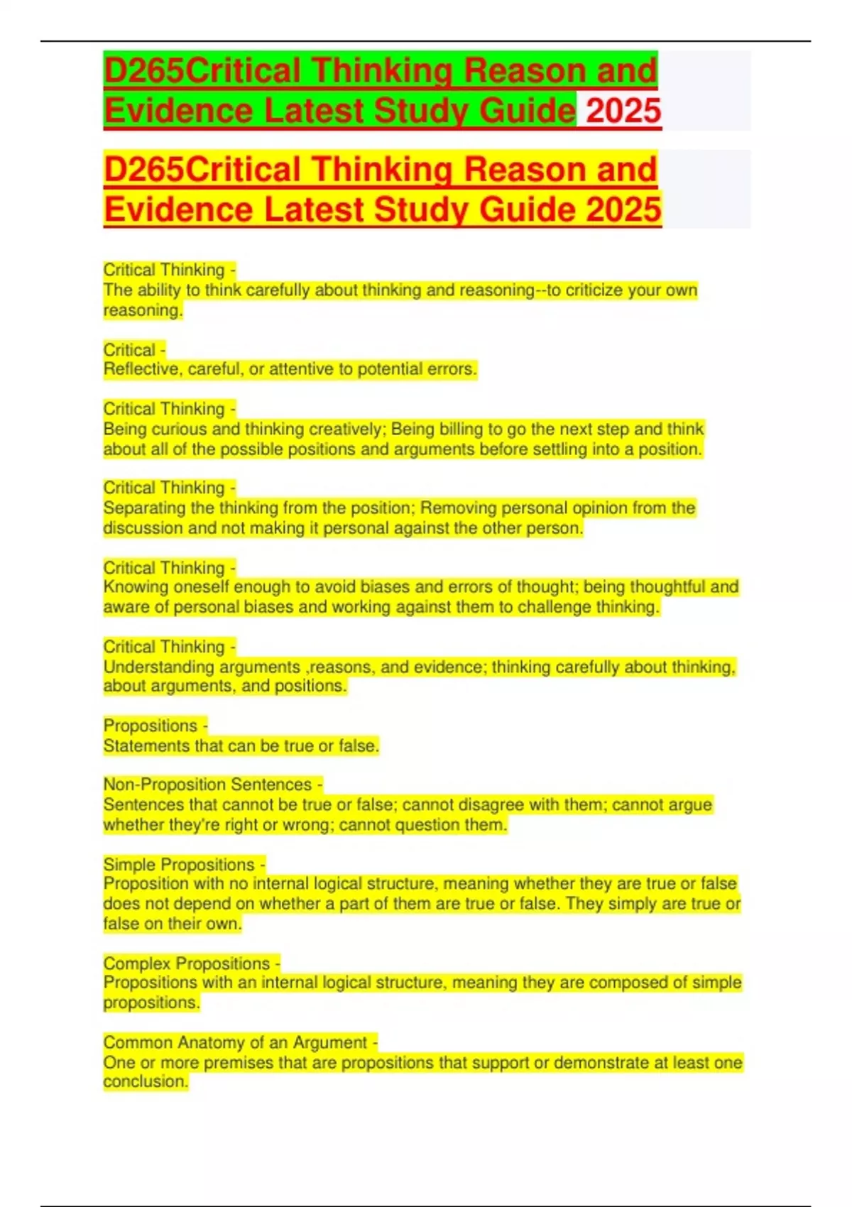 D265Critical Thinking Reason and Evidence Latest Study Guide