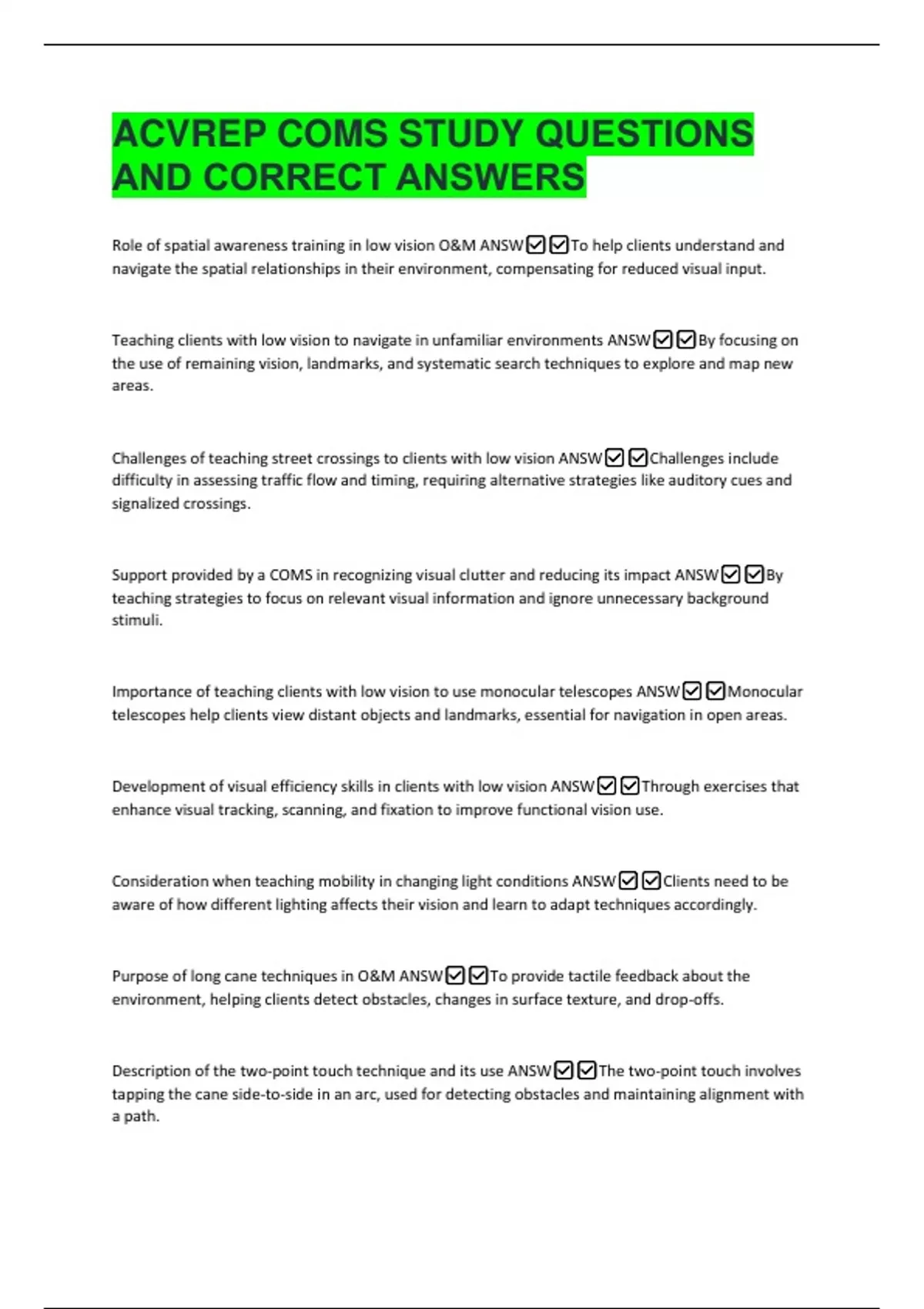 COMS ANSW✅✅Certified Orientation and Mobility Specialist