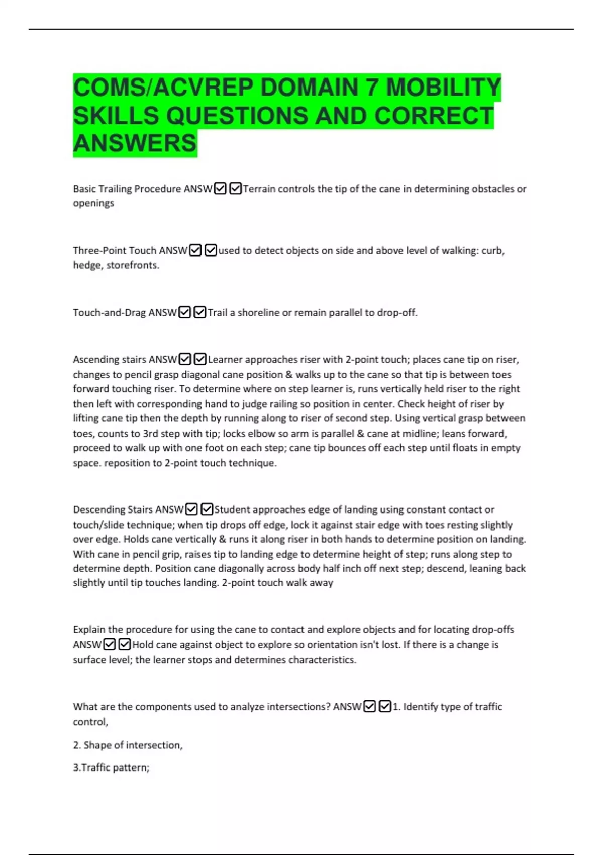 Three-Point Touch ANSW✅✅used to detect objects on side and above level of walking: curb,