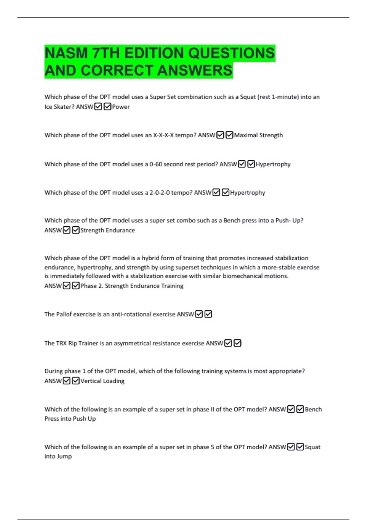 Which of the following is an example of a super set in phase 5 of the OPT model? ANSW✅✅Squat