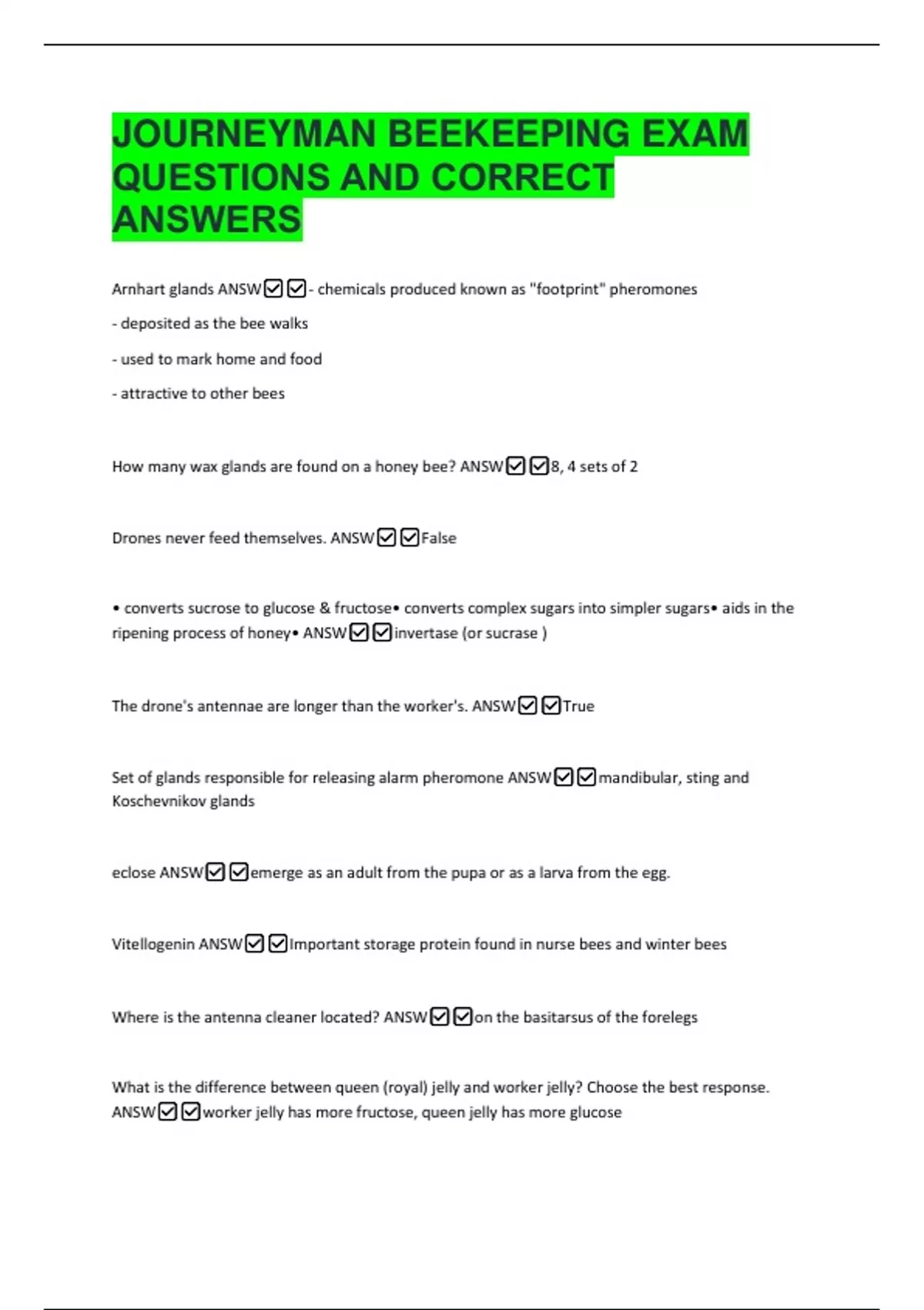 Koschevnikov gland ANSW✅✅produces an alarm pheromone, released when bees sting