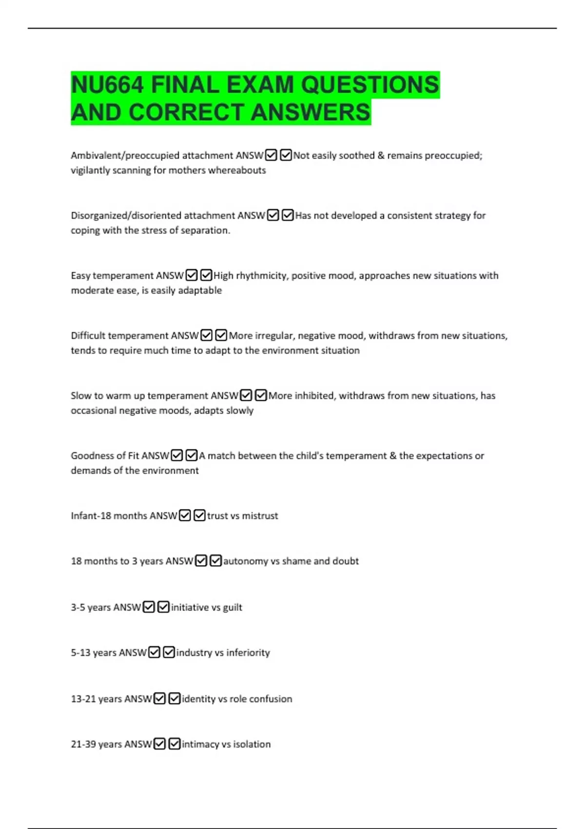 NU664 FINAL EXAM QUESTIONS AND CORRECT ANSWERS