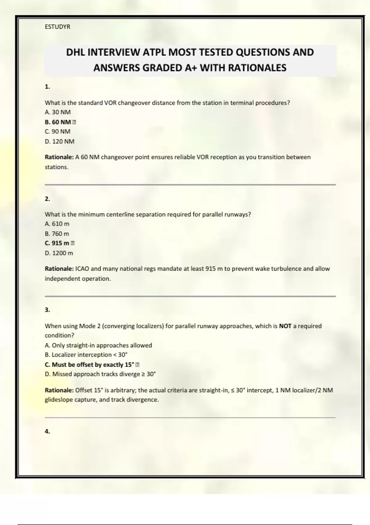 DHL INTERVIEW ATPL MOST TESTED QUESTIONS AND ANSWERS GRADED A+ WITH RATIONALES