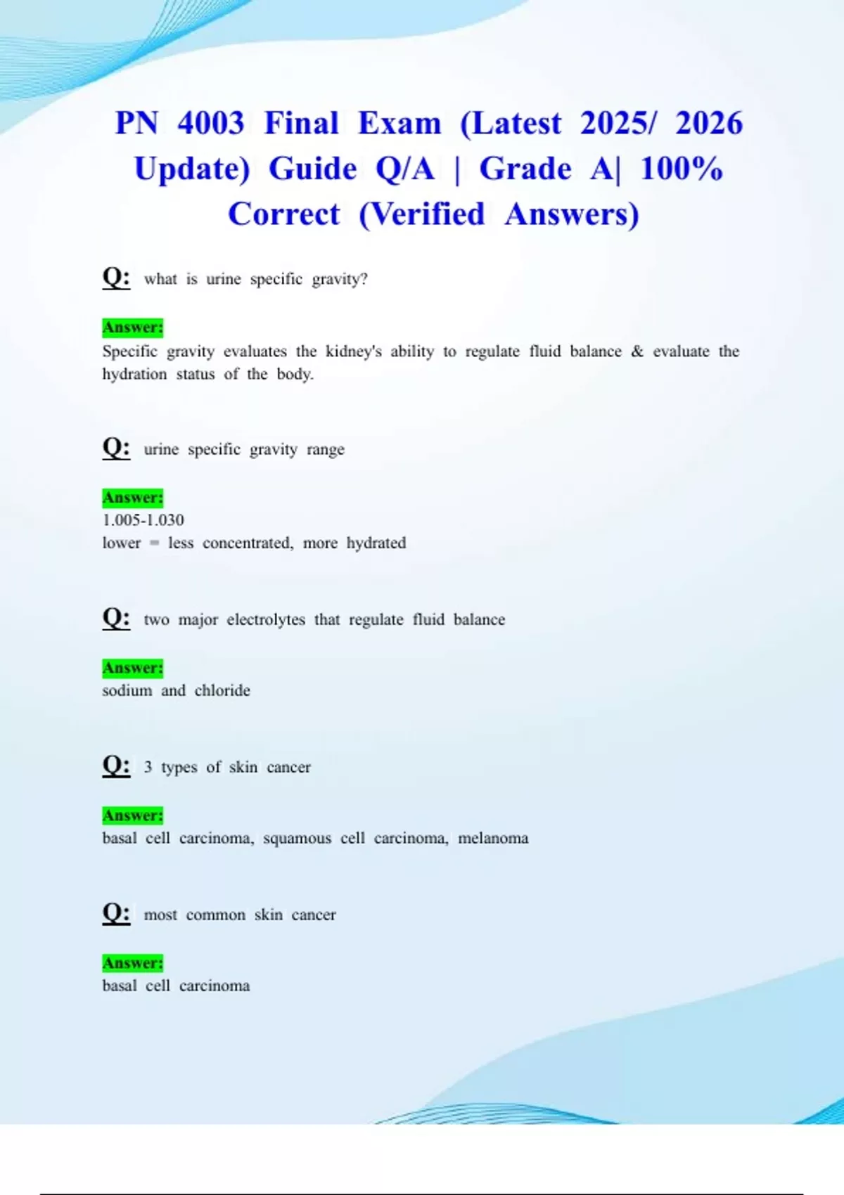 Specificl gravityl evaluatesl thel kidney'sl abilityl tol regulatel fluidl balancel &l evaluatel thel