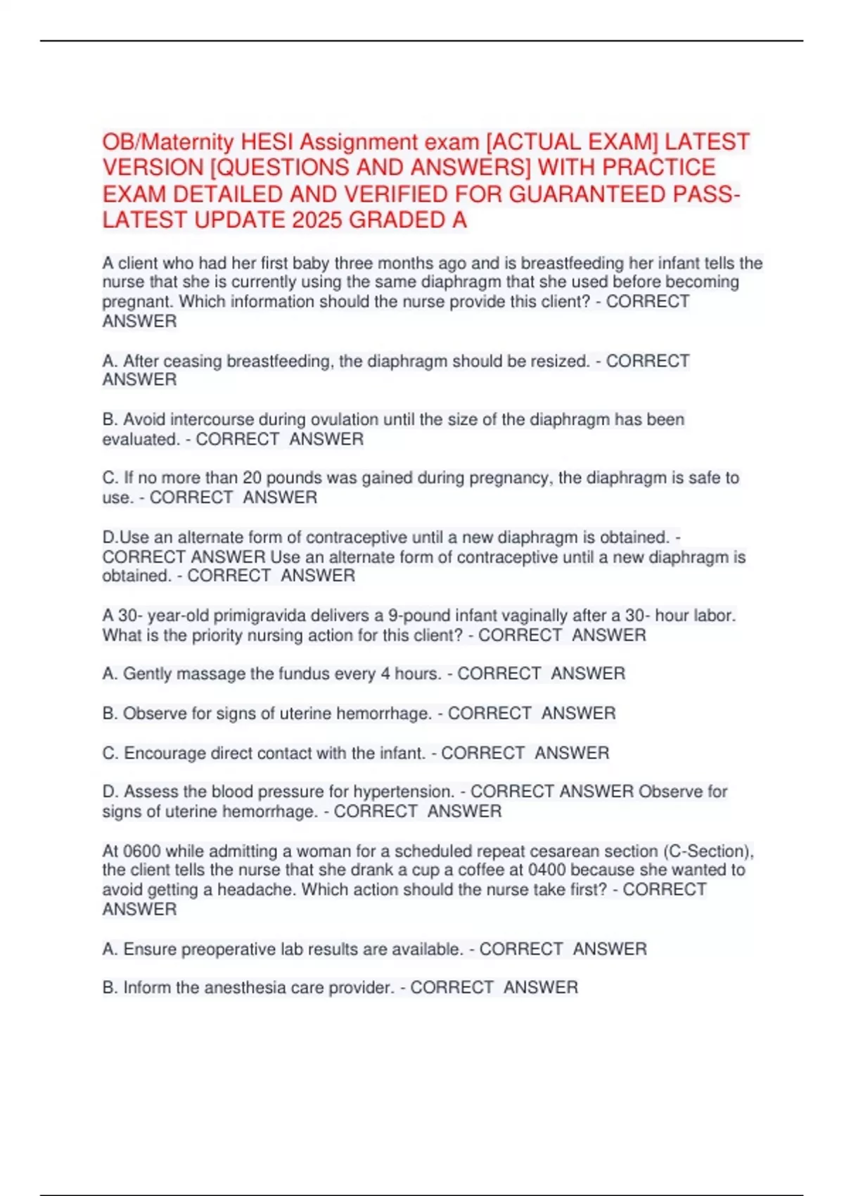 OB/Maternity HESI Assignment exam [ACTUAL EXAM] LATEST VERSION [QUESTIONS AND ANSWERS] WITH PRACTICE EXAM DETAILED AND VERIFIED FOR GUARANTEED PASS- LATEST UPDATE 2025 GRADED A