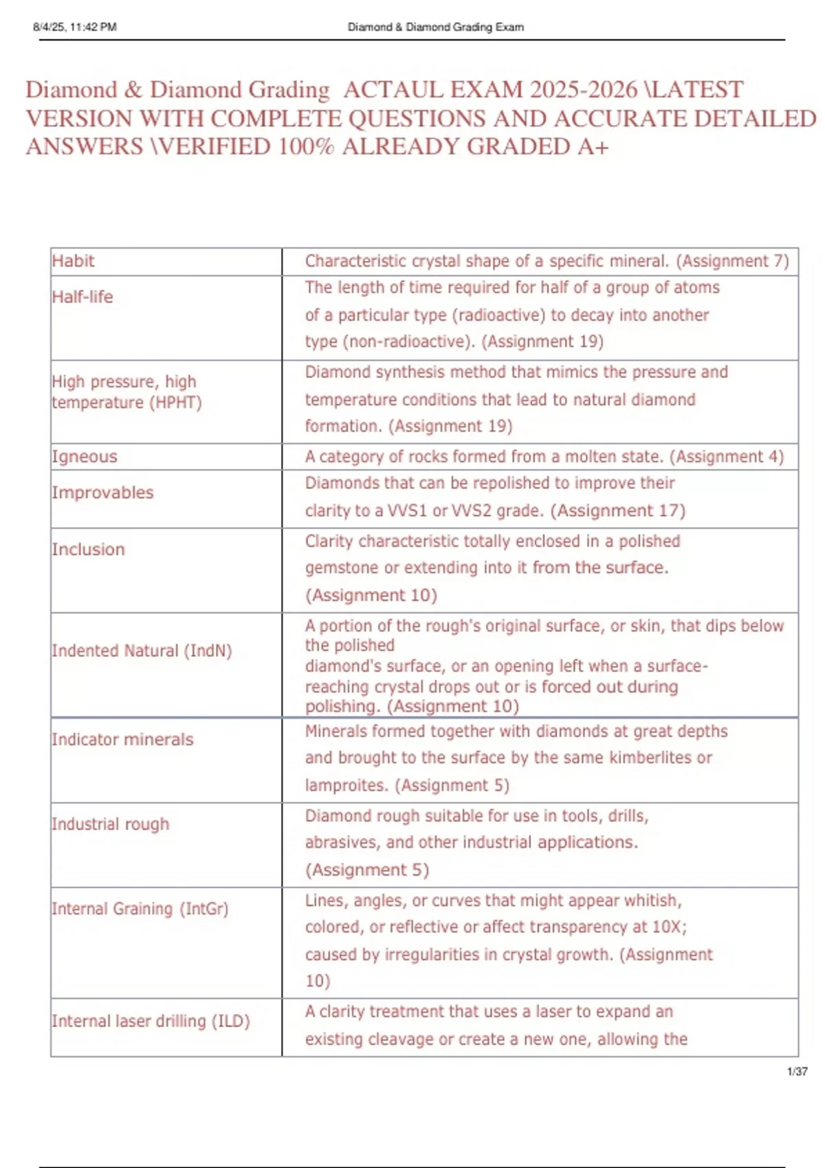 , 8/4/25, 11:42 PM Diamond & Diamond Grading Exam