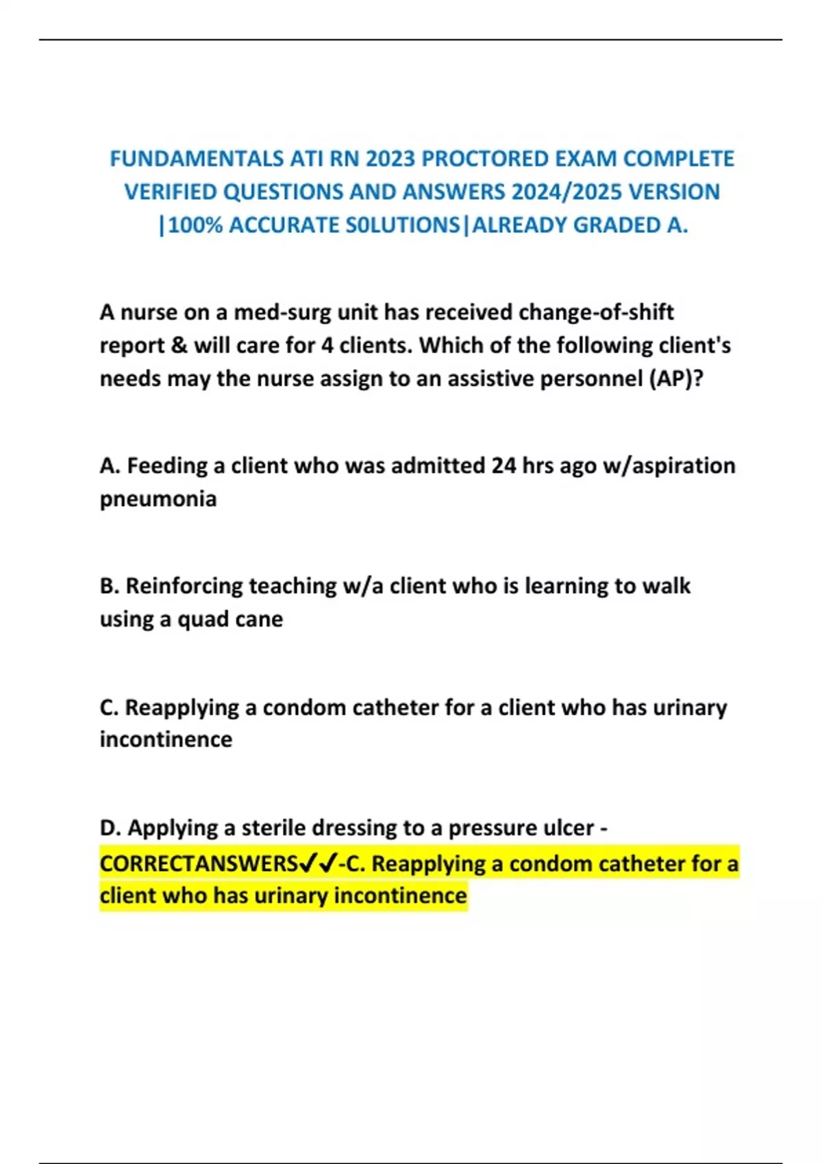 CORRECTANSWERS✔✔-C. Reapplying a condom catheter for a