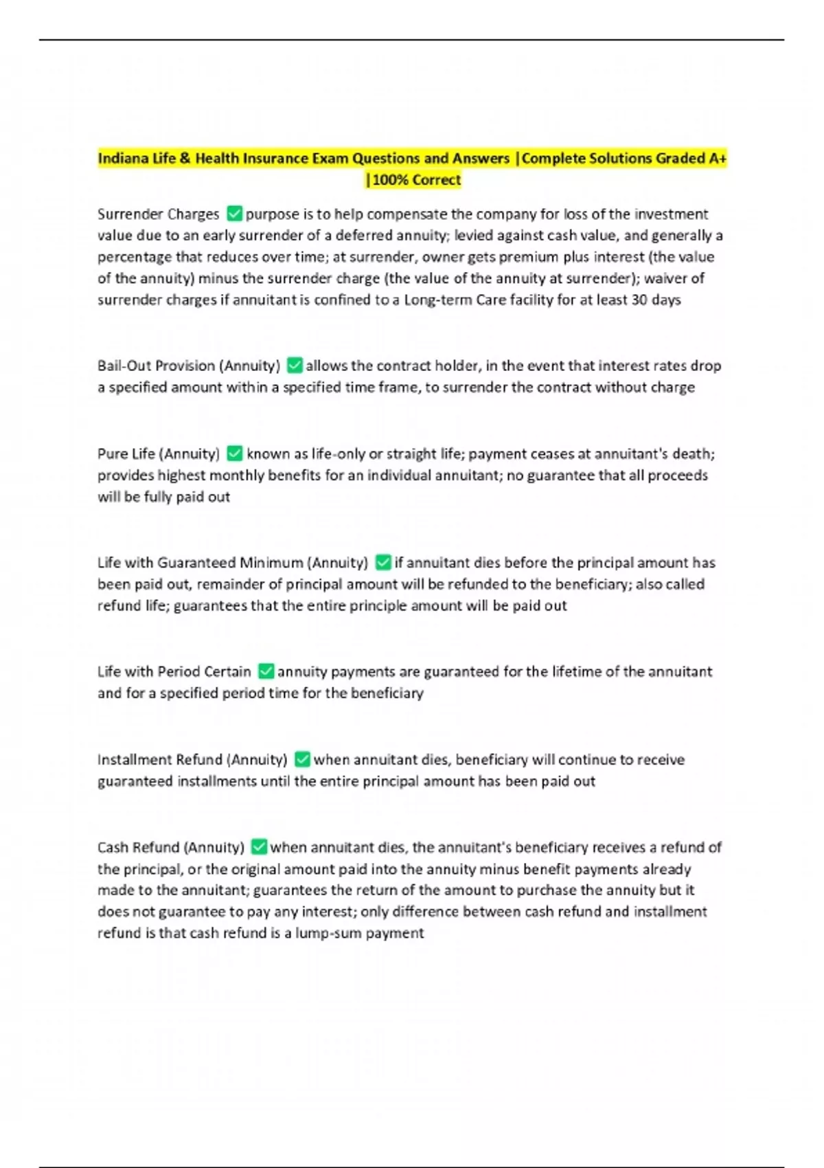 Indiana Life & Health Insurance Exam Questions and Answers |Complete Solutions Graded A+ |100% Correct