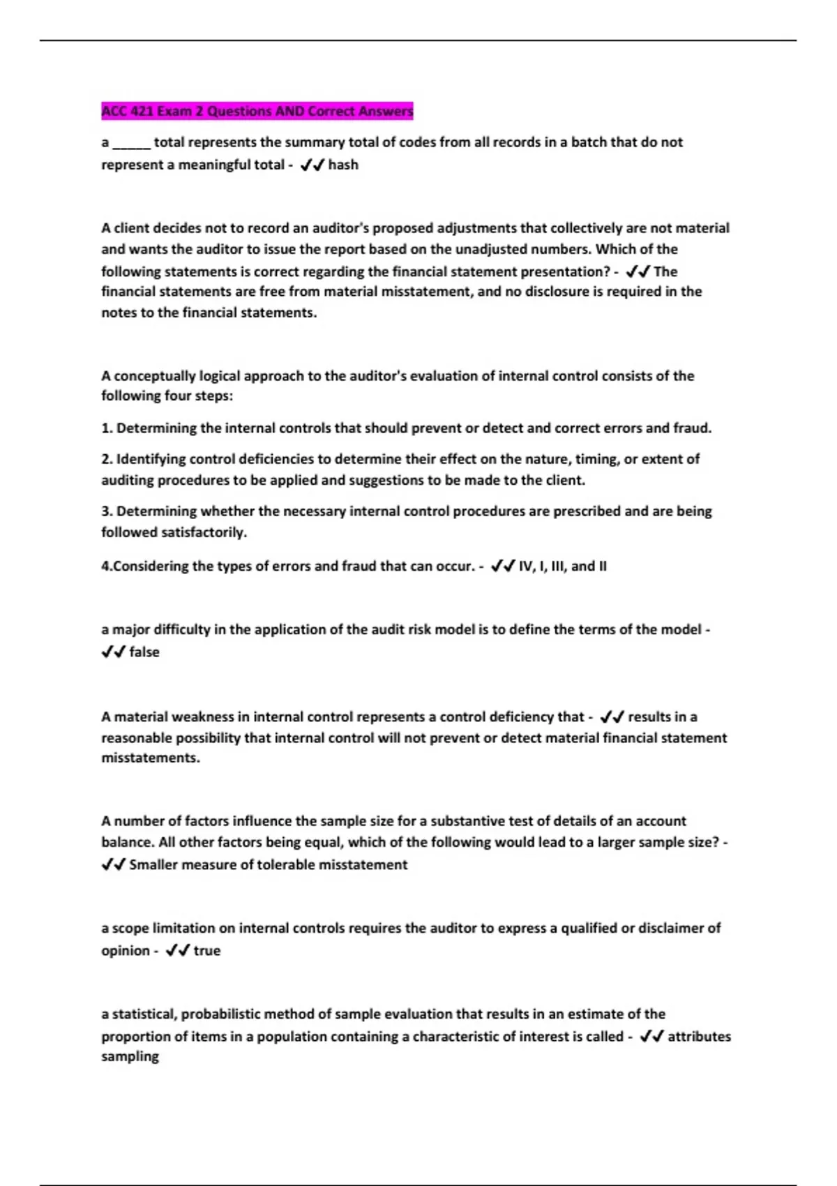 ACC 421 Exam 2 Questions AND Correct Answers