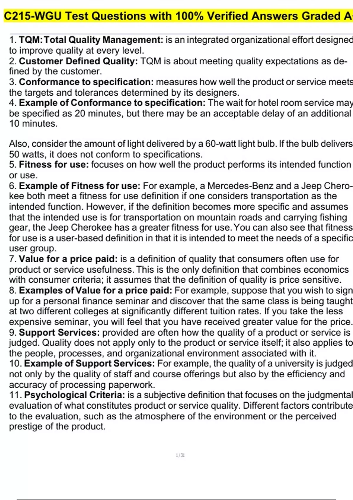 15. Common quality definition in manufacturing: 1. Conformance: the degree to