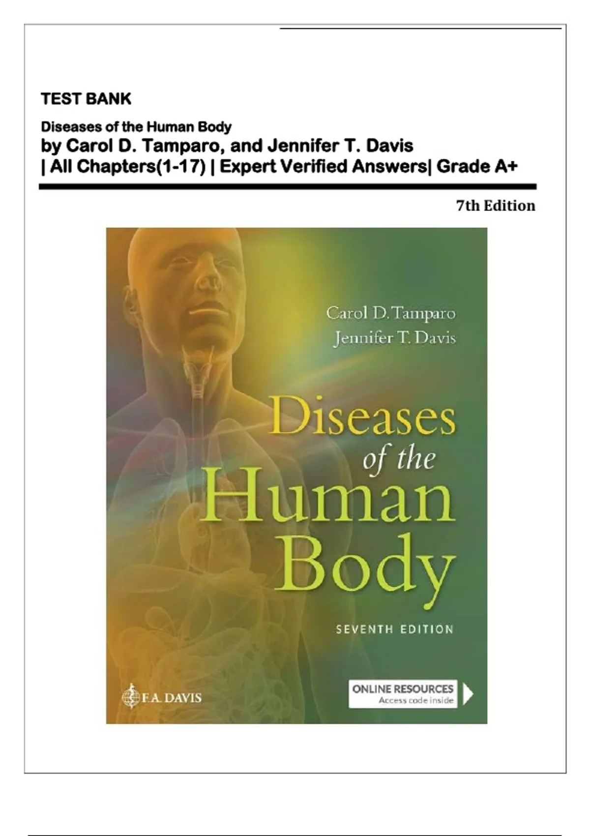 TEST BANK Diseases of the Human Body by Carol D. Tamparo, and Jennifer T. Davis | All Chapters(1-17) | Expert Verified Answers| Grade A+ |Well-Formatted