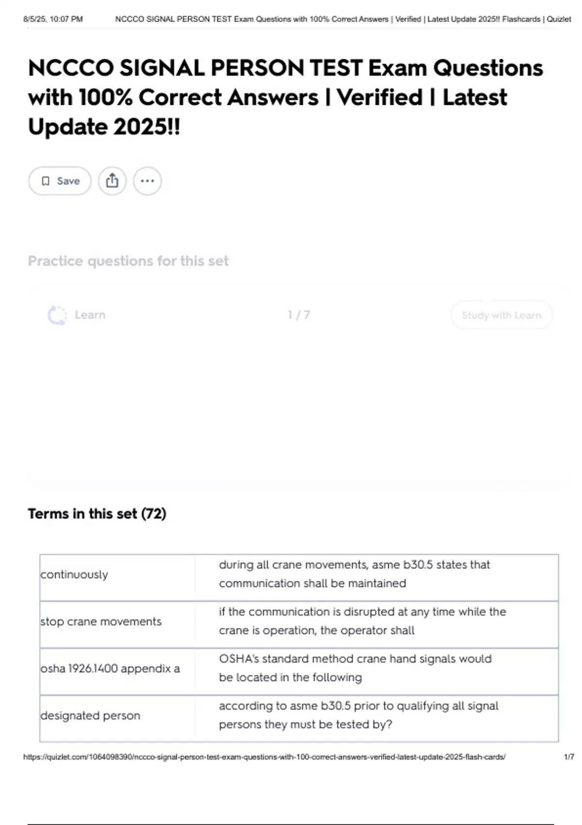 , 8/5/25, 10:07 PM NCCCO SIGNAL PERSON TEST Exam Questions with 100% Correct Answers | Verified | Latest Update 2025!! Flashcards | Quizlet