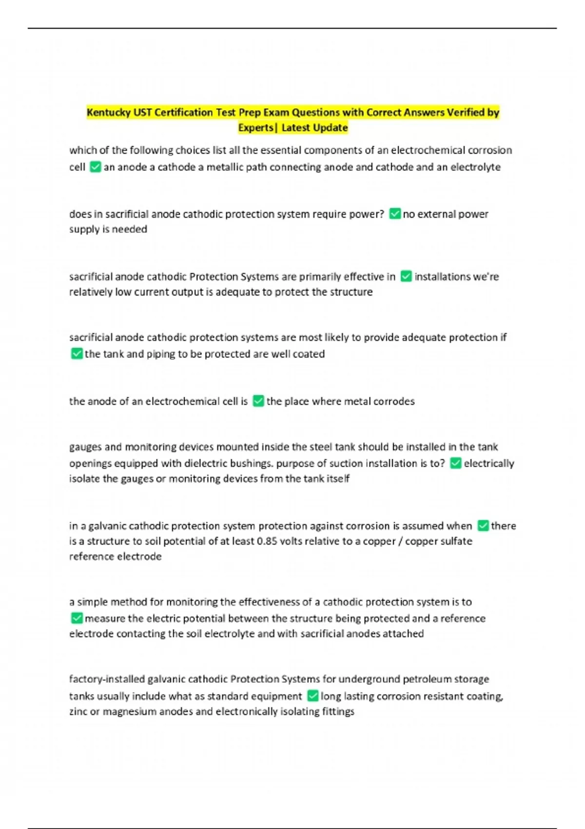 Kentucky UST Certification Test Prep Exam Questions with Correct Answers Verified by Experts| Latest Update