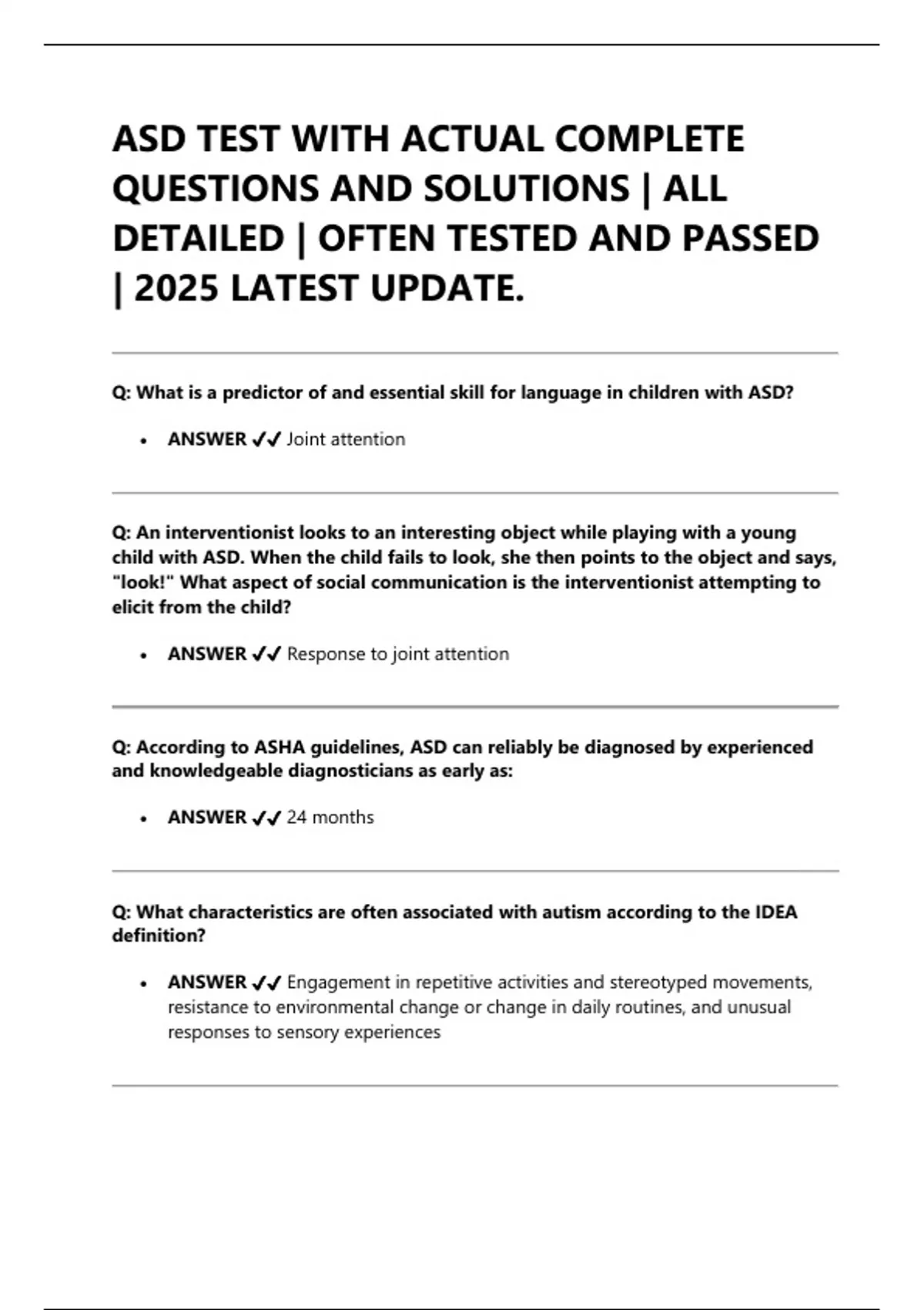 ASD TEST WITH ACTUAL COMPLETE QUESTIONS AND SOLUTIONS | ALL DETAILED | OFTEN TESTED AND PASSED | 2025 LATEST UPDATE.