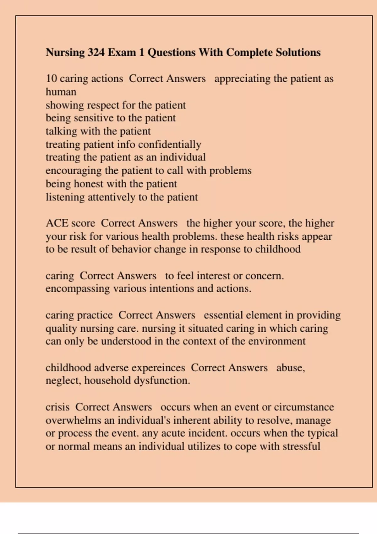 Nursing 324 Exam 1 Questions With Complete Solutions