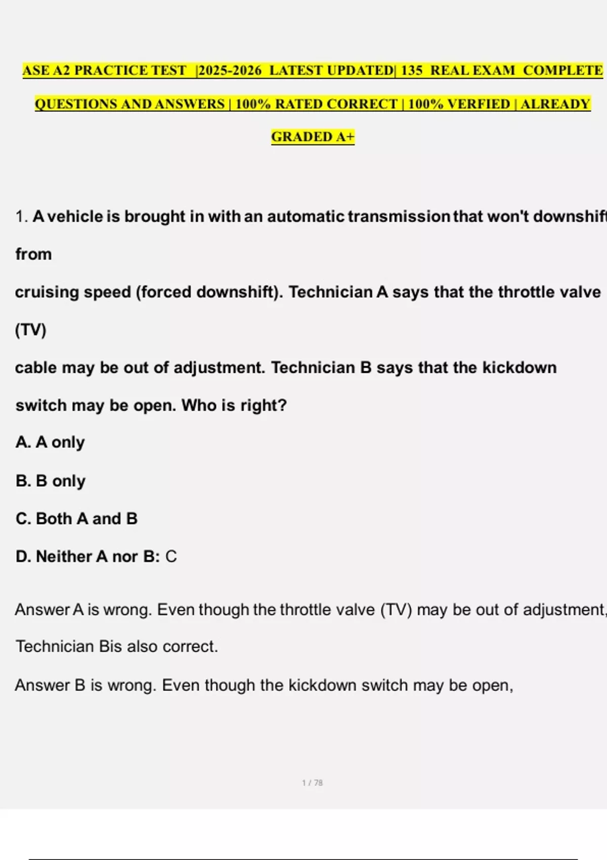 cruising speed (forced downshift). Technician A says that the throttle valve