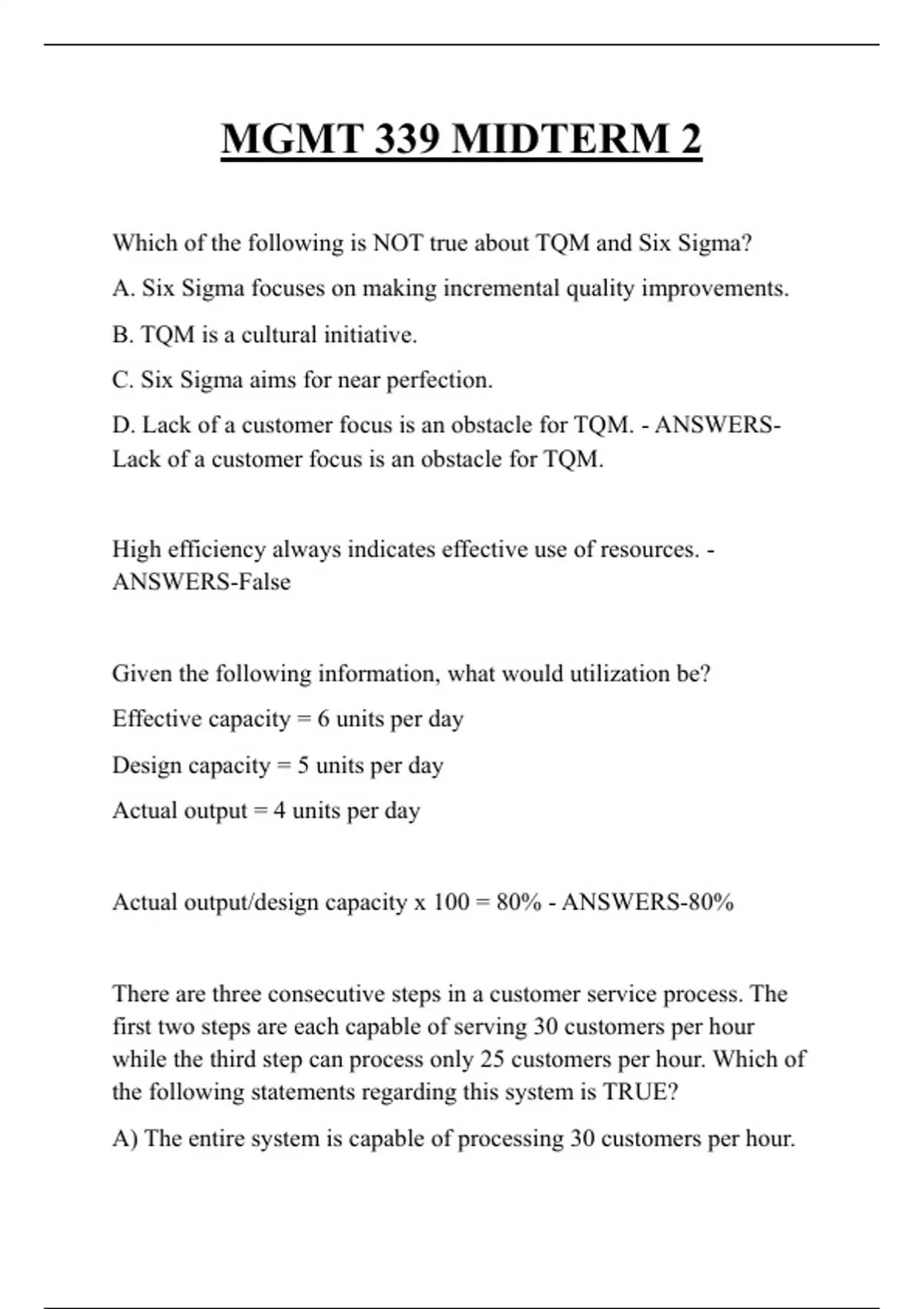 MIDTERM 2 MGMT 339 QUESTIONS AND ANSWERS 2025