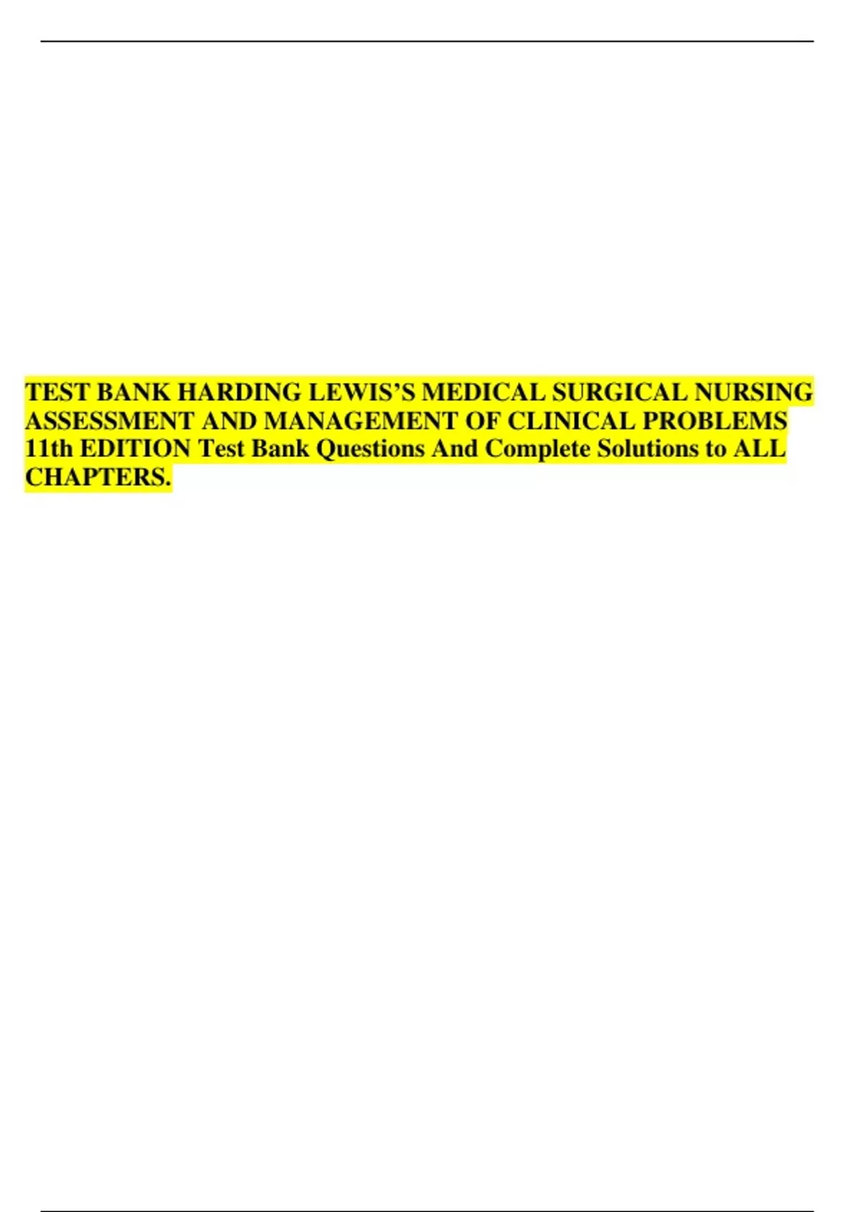 Test Bank for Lewis’s Medical-Surgical Nursing, 11th Edition by Harding, Kwong, Roberts, Hagler, and Reinisch |All Chapters|
