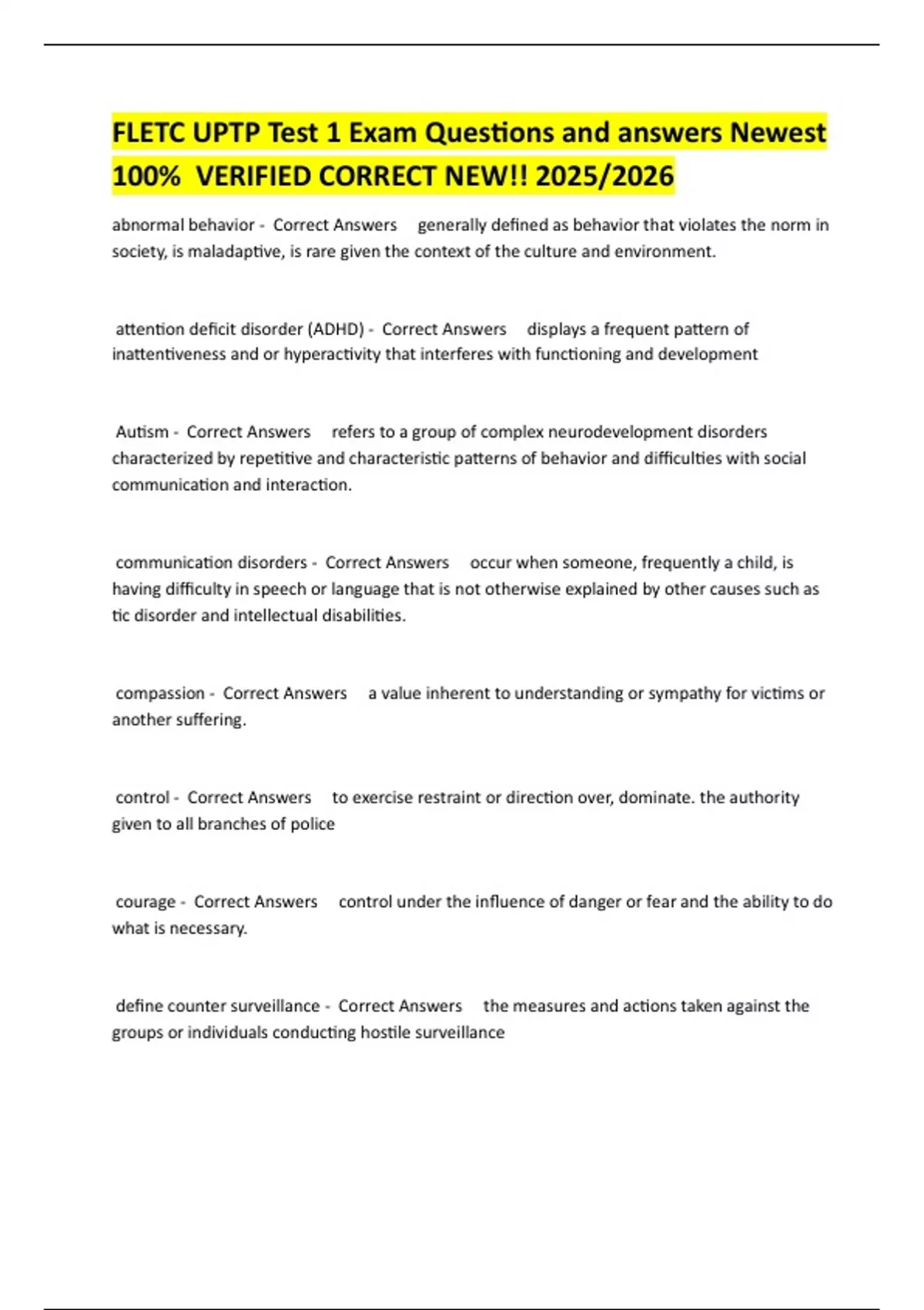 FLETC UPTP Test 1 Exam Questions and answers Newest 100% VERIFIED CORRECT NEW!! 2025/2026FLETC UPTP Test 1 Exam Questions and answers Newest 100% VERIFIED CORRECT NEW!! 2025/2026FLETC UPTP Test 1 Exam Questions and answers Newest 100% VERIFIED CORRECT NEW!! 2025/2026FLETC UPTP Test 1 Exam Questions and answers Newest 100% VERIFIED CORRECT NEW!! 2025/2026FLETC UPTP Test 1 Exam Questions and answers Newest 100% VERIFIED CORRECT NEW!! 2025/2026