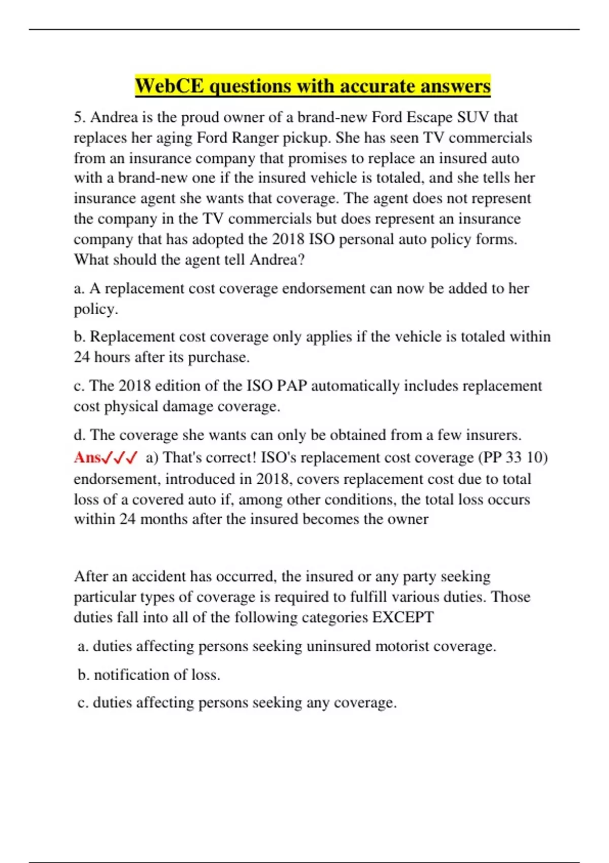 Ans✓✓✓ a) That's correct! ISO's replacement cost coverage (PP 33 10)