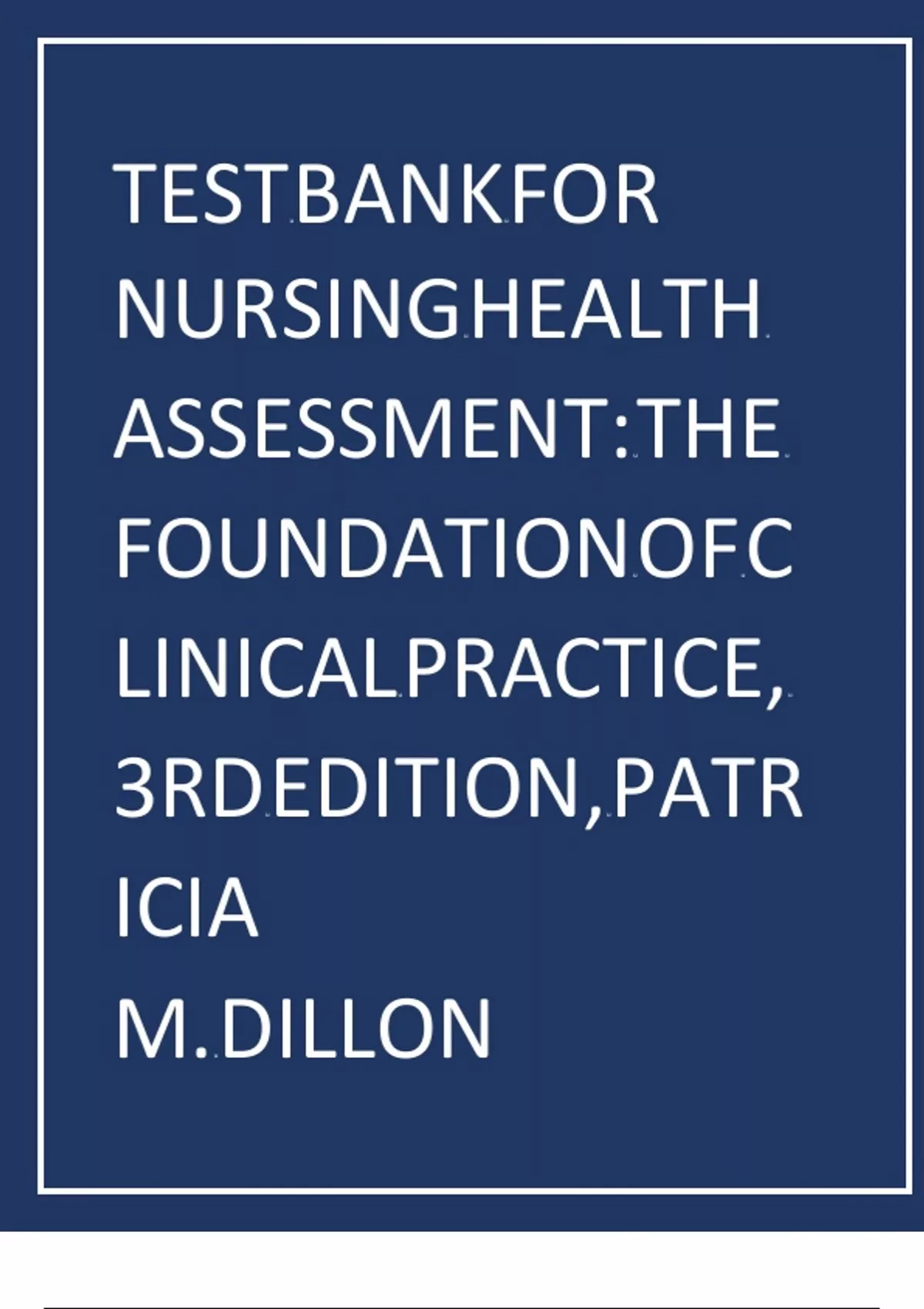 TEST BANK For Nursing Health Assessment The Foundation of Clinical Practice, 3rd Edition, Patricia M. Dillon, All Chapters 1 - 27, Complete Newest Version