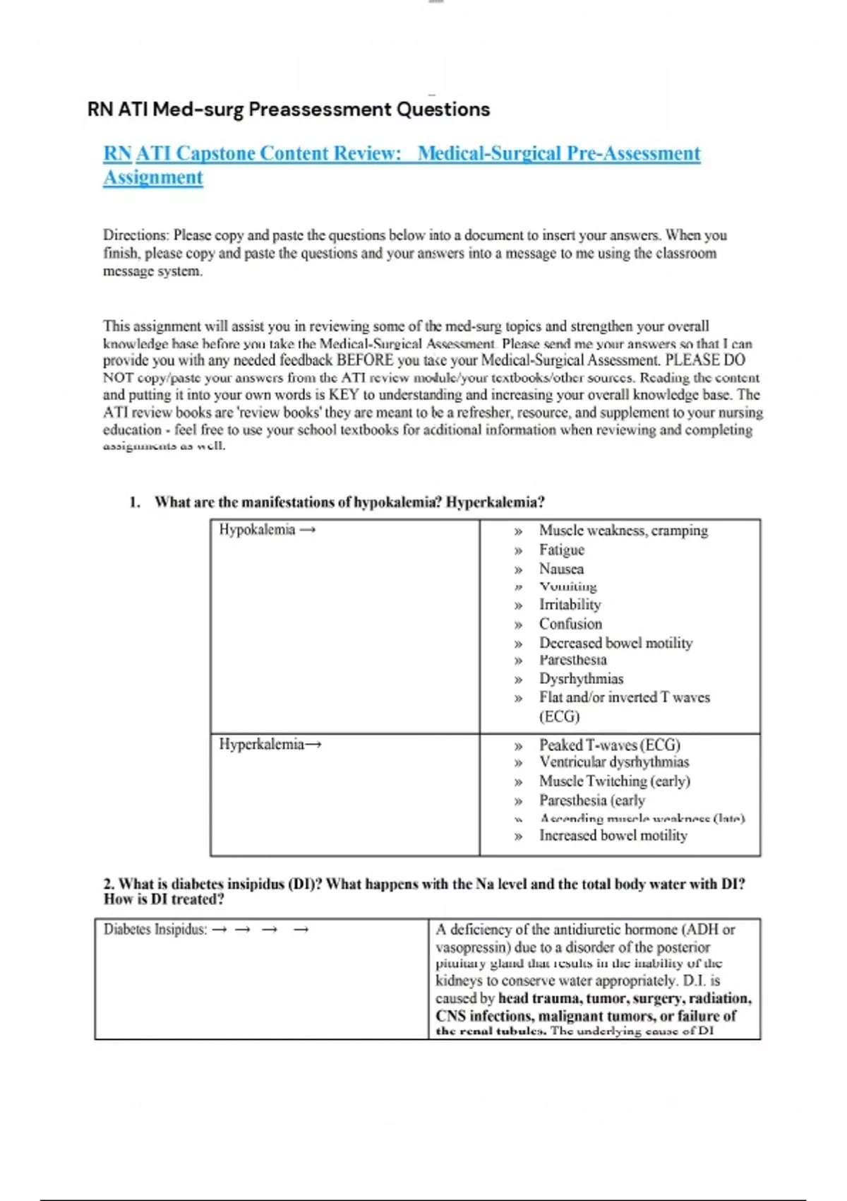 RN ATI Capstone Content Review: Medical-Surgical Pre-Assessment Assignment