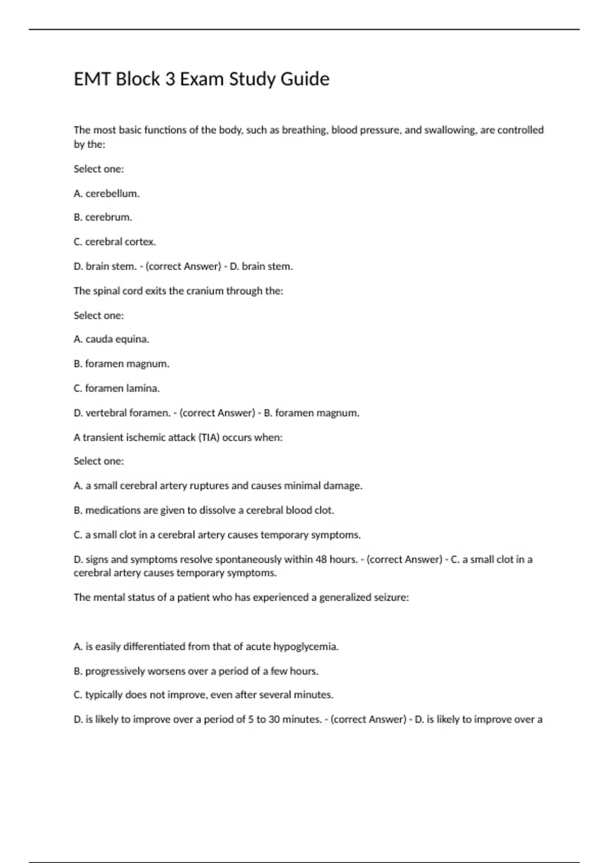 EMT Block 3 Exam Study Guide