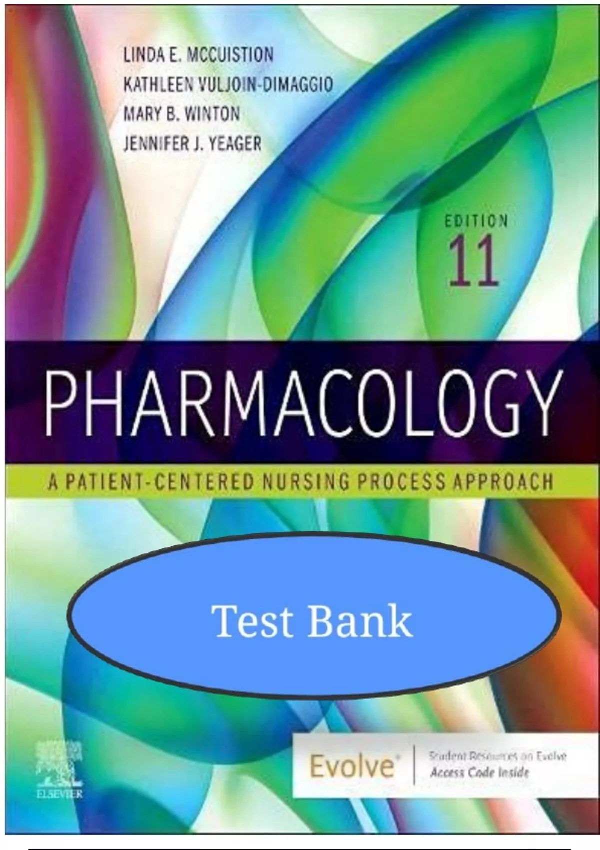 TEST BANK PHARMACOLOGY AvPATIENT- CENTERED NURSING PROCESS APPROACH, 11TH EDITION B Y LINDA E. MCCUISTION CHAPTERv1-58 NEW UPDATE, STUDY GUIDE