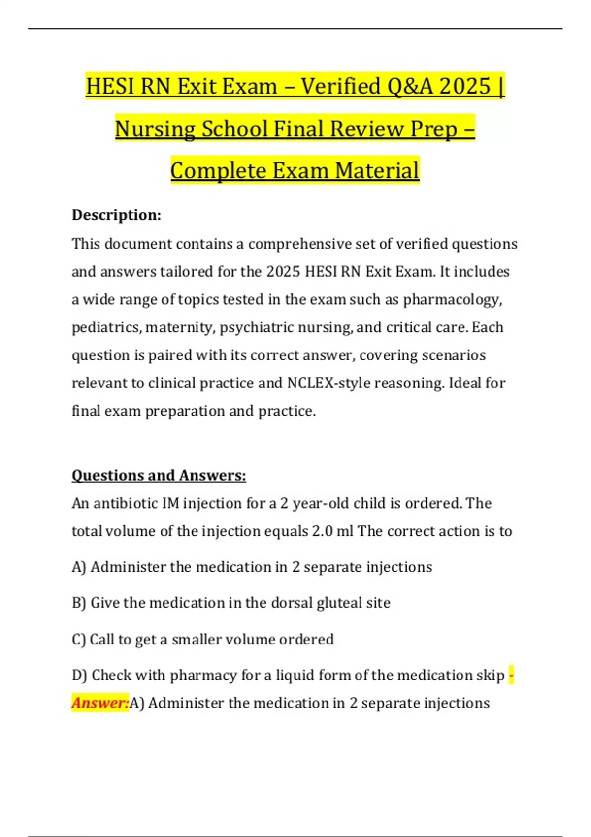 and answers tailored for the 2025 HESI RN Exit Exam. It includes