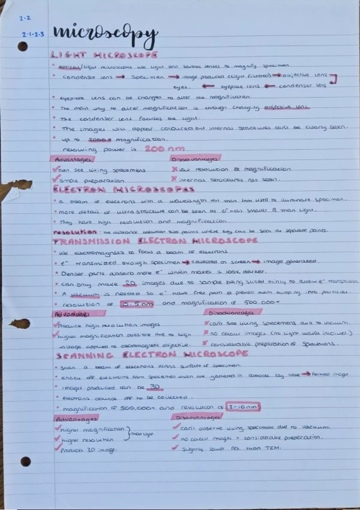 Summary Notes: 2.1 Cell structure (Foundations in Biology) OCR A Level Biology
