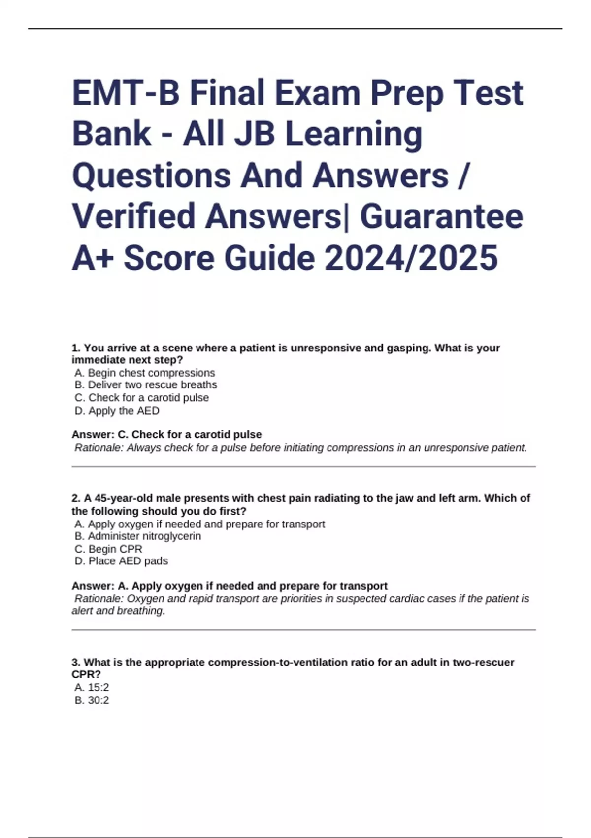 1. You arrive at a scene where a patient is unresponsive and gasping. What is your