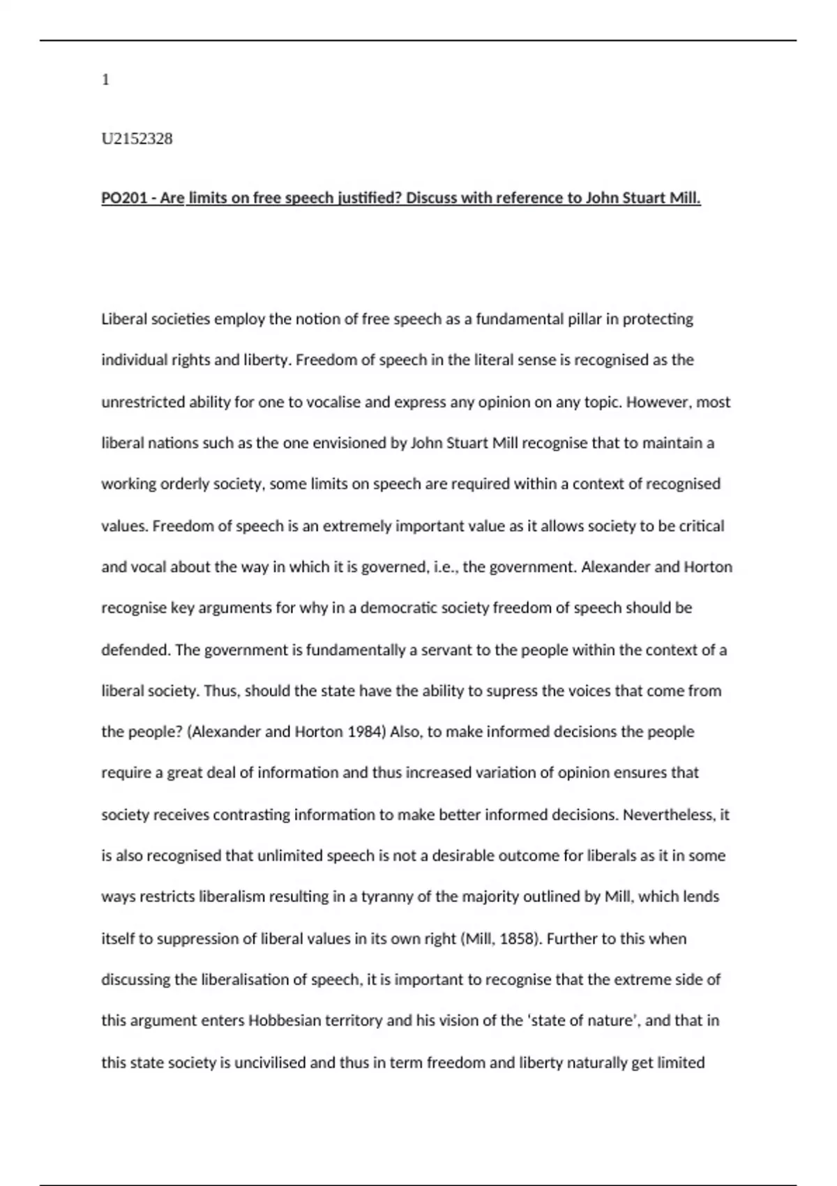 PO201 - Are limits on free speech justified? Discuss with reference to John Stuart Mill.