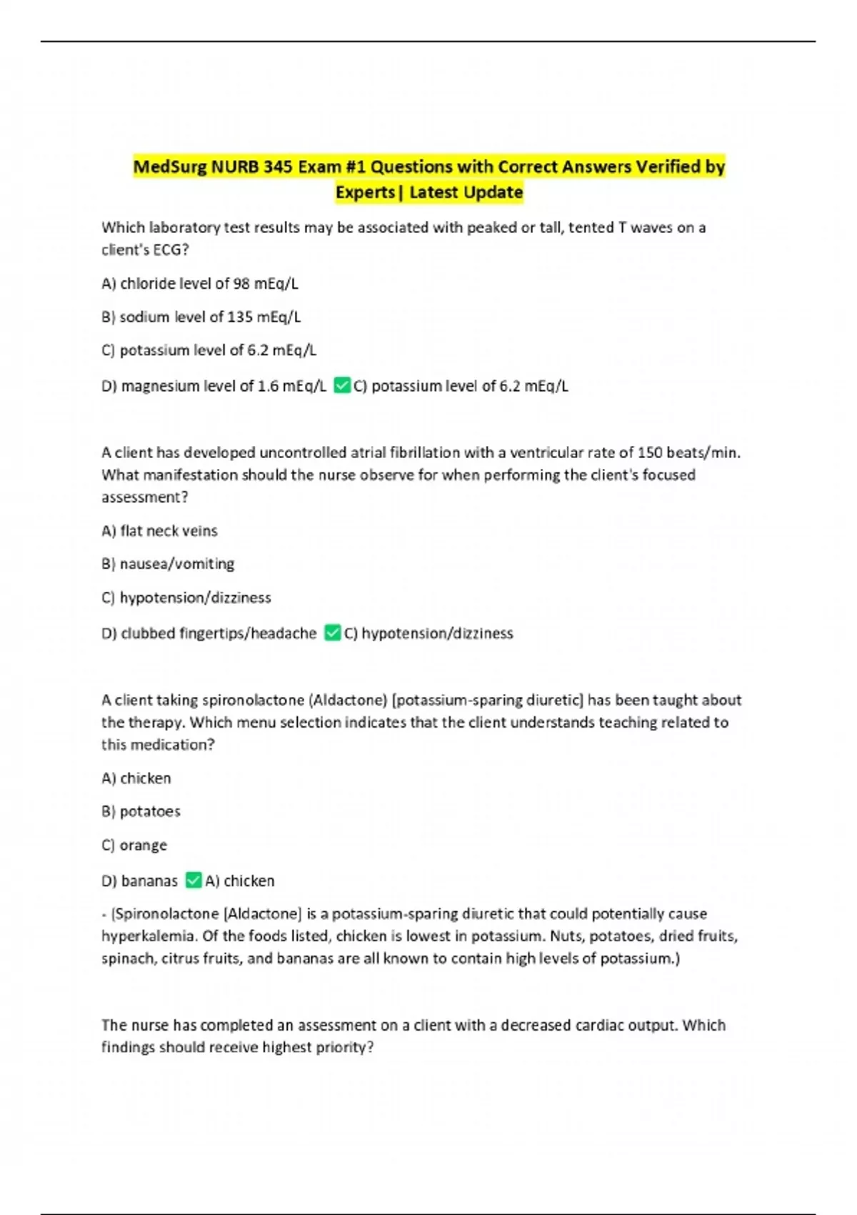 MedSurg NURB 345 Exam #1 Questions with Correct Answers Verified by Experts| Latest Update