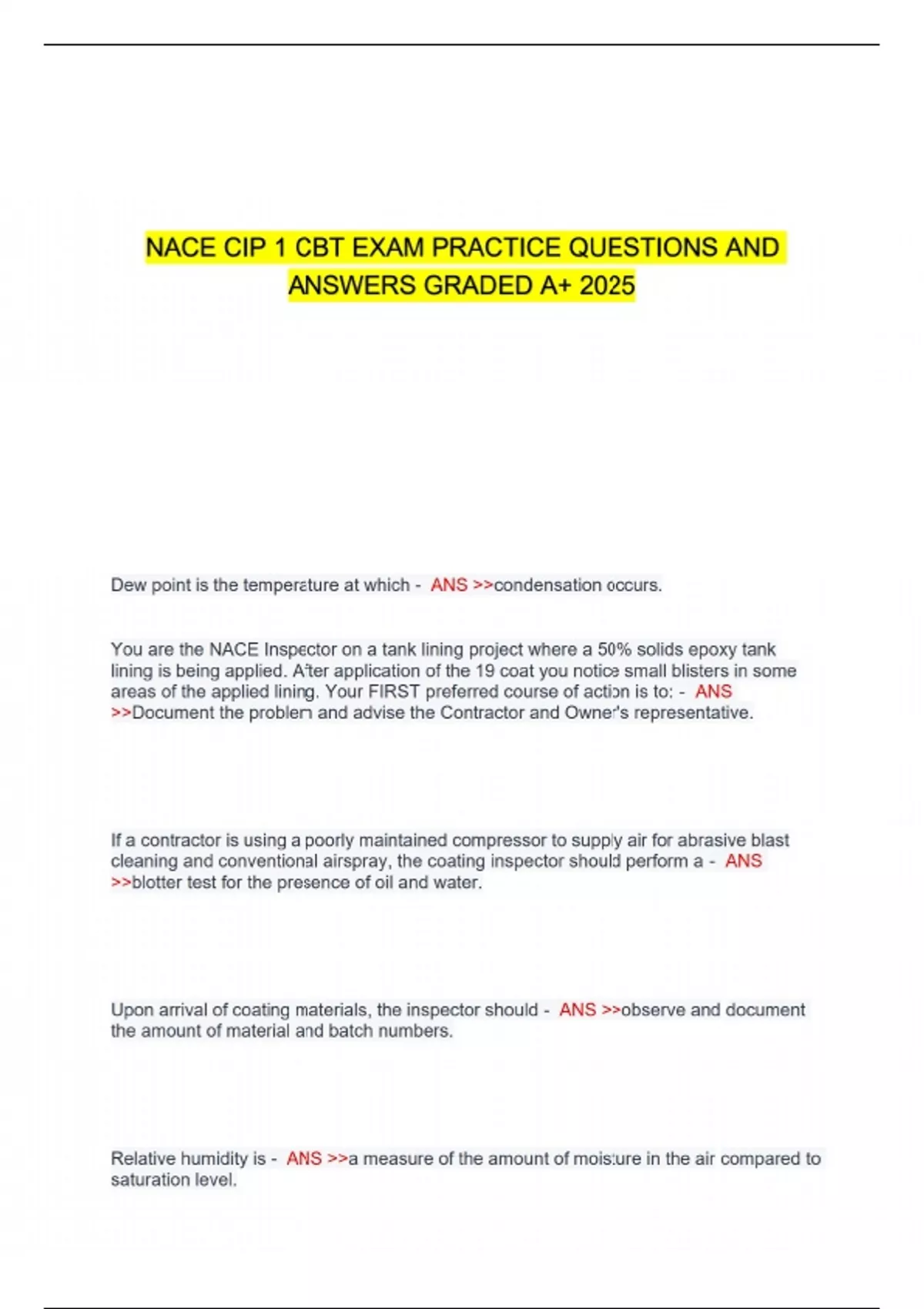 NACE CIP 1 CBT EXAM PRACTICE QUESTIONS AND ANSWERS GRADED A+ 2025 NACE CIP 1 exam questions 2025 CIP 1 CBT practice questions NACE CIP 1 study guide 2025 CIP 1 graded answers 2025 NACE CIP certification exam prep CIP 1 practice test 2025 NACE CIP level 1 exam prep CIP 1 exam preparation questions NACE CIP 1 mock exam 2025 CIP 1 practice exam questions NACE CIP CBT questions 2025 CIP 1 certification study material NACE CIP level 1 sample questions CIP 1 test answers 2025 NACE CIP 1 practice test A+ CIP 1 online exam practice NACE CIP exam preparation 2025 CIP 1 certified exam guide NACE CIP 1 pass guarantee CIP 1 exam questions and answers NACE CIP level 1 test prep CIP 1 computer-based questions 2025 NACE CIP 1 review questions CIP 1 test questions and answers NACE CIP 1 sample test 2025 CIP 1 study questions A+ NACE CIP level 1 practice paper CIP 1 graded practice test