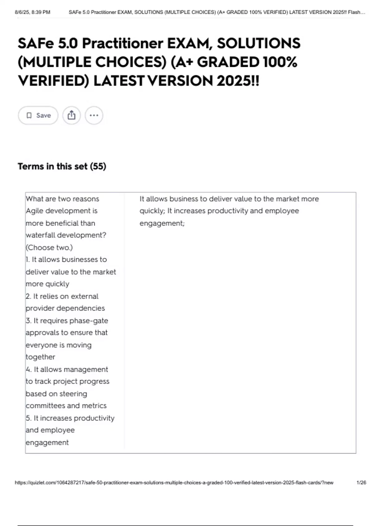 8/6/25, 8:39 PM SAFe 5.0 Practitioner EXAM, SOLUTIONS (MULTIPLE CHOICES) (A+ GRADED 100% VERIFIED) LATEST VERSION 2025!! Flash…