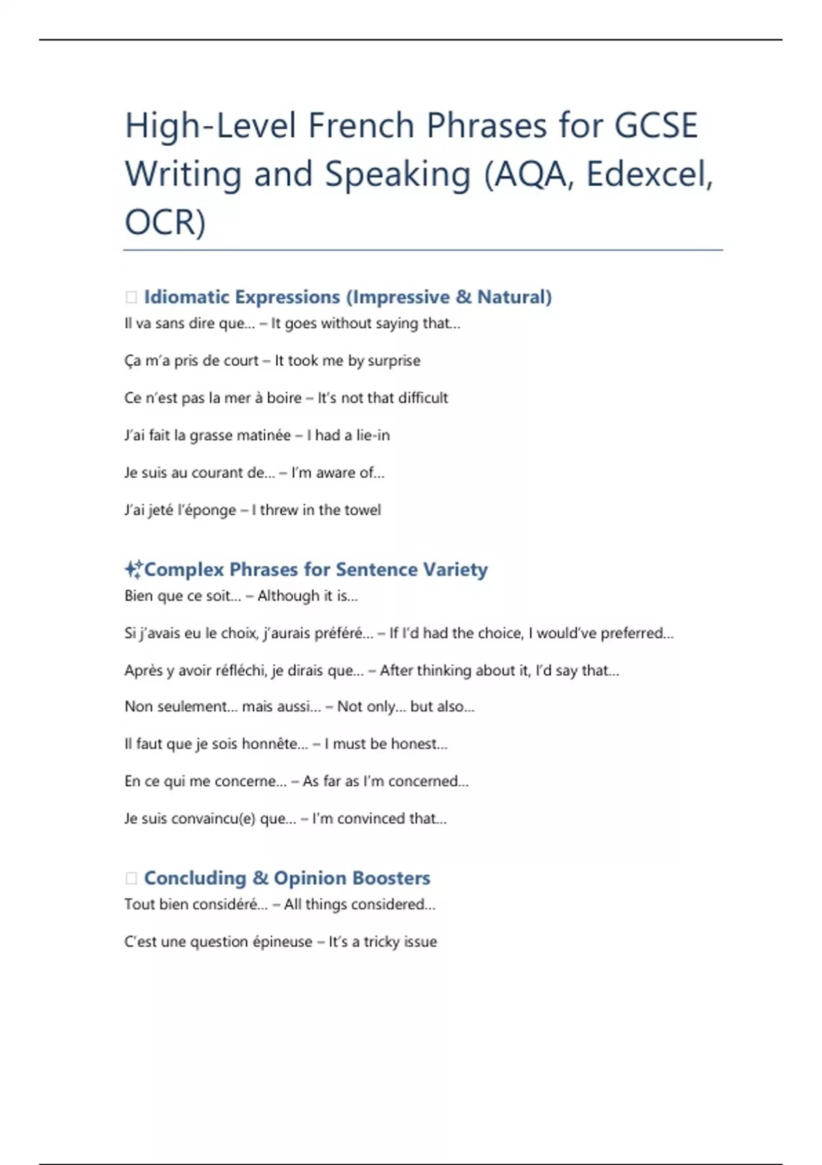 🔥 Idiomatic Expressions (Impressive & Natural)