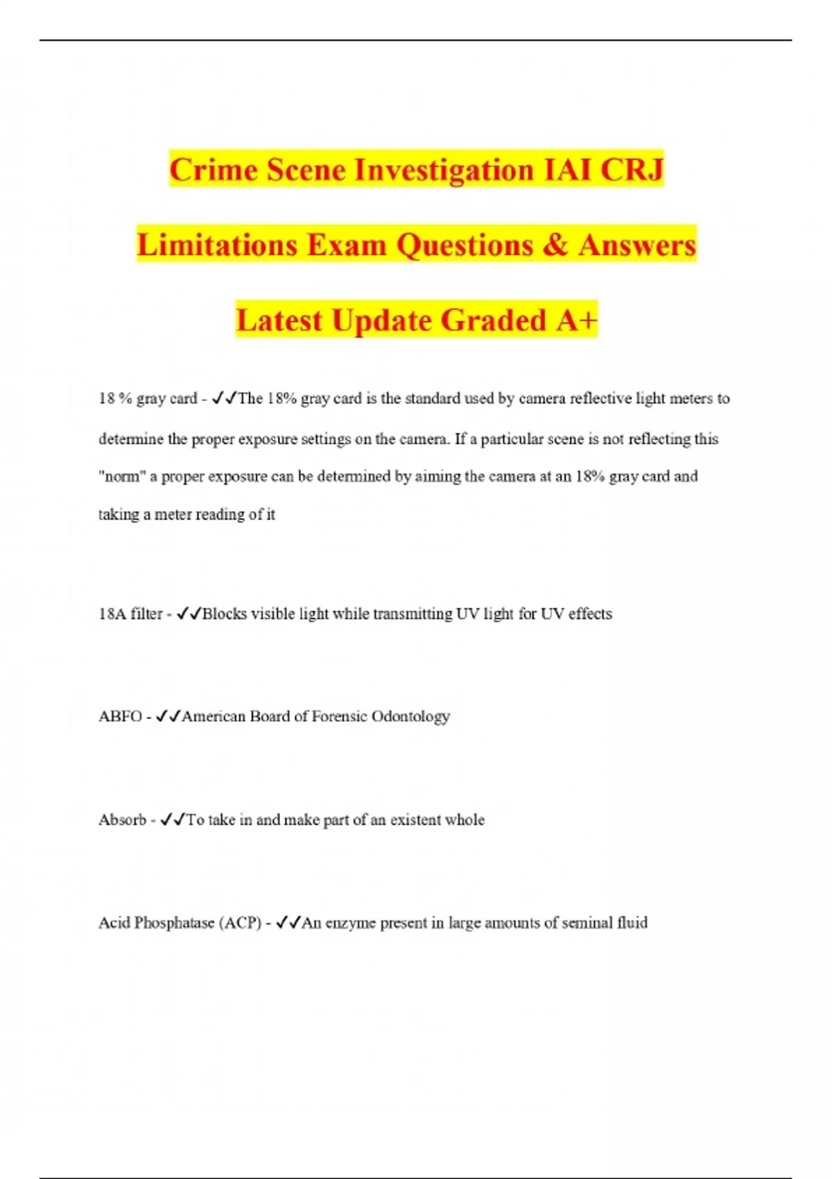Crime Scene Investigation IAI CRJ Limitations Exam Questions & Answers Latest Update Graded A+