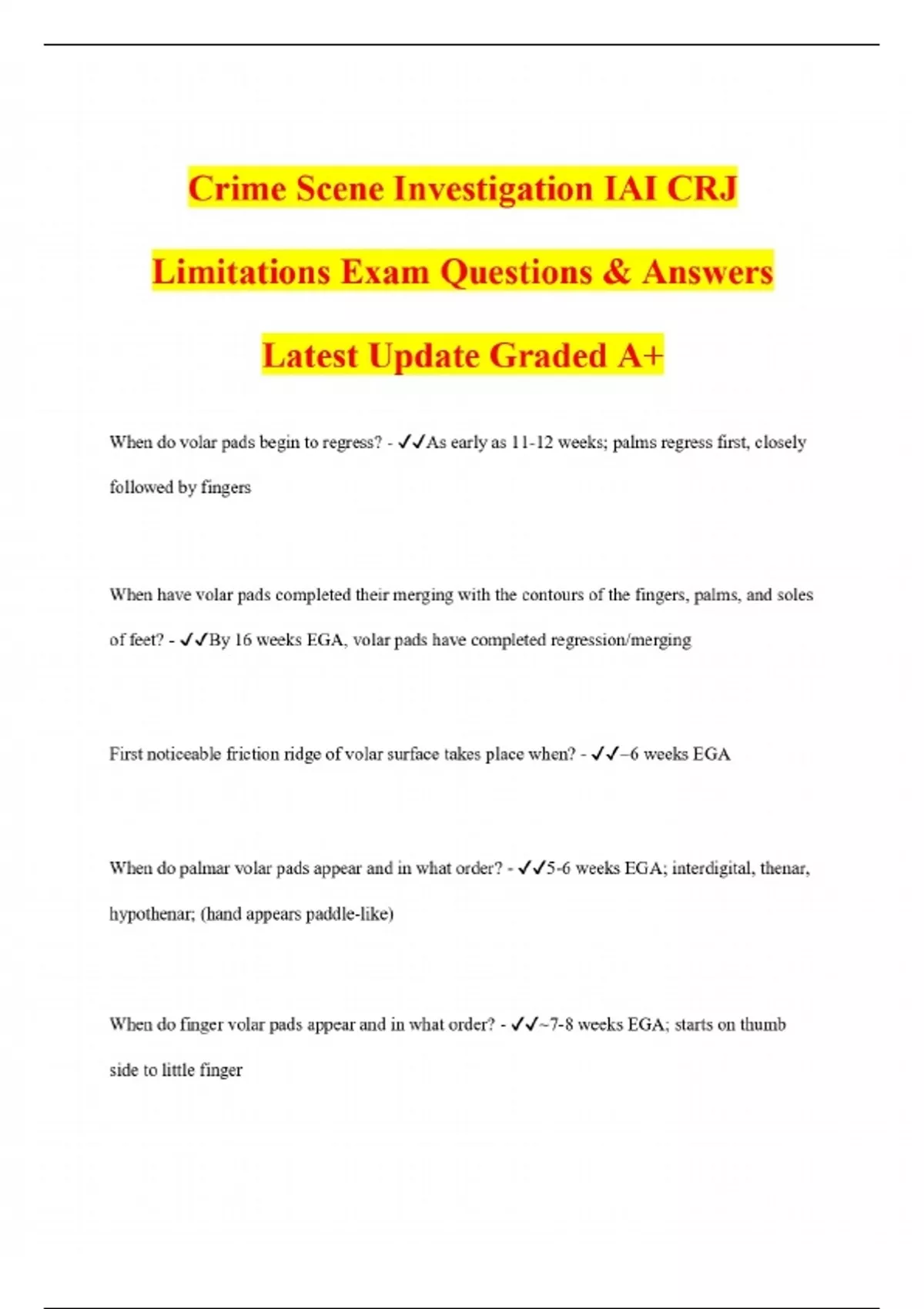 Crime Scene Investigation IAI CRJ Limitations Exam Questions & Answers Latest Update Graded A+