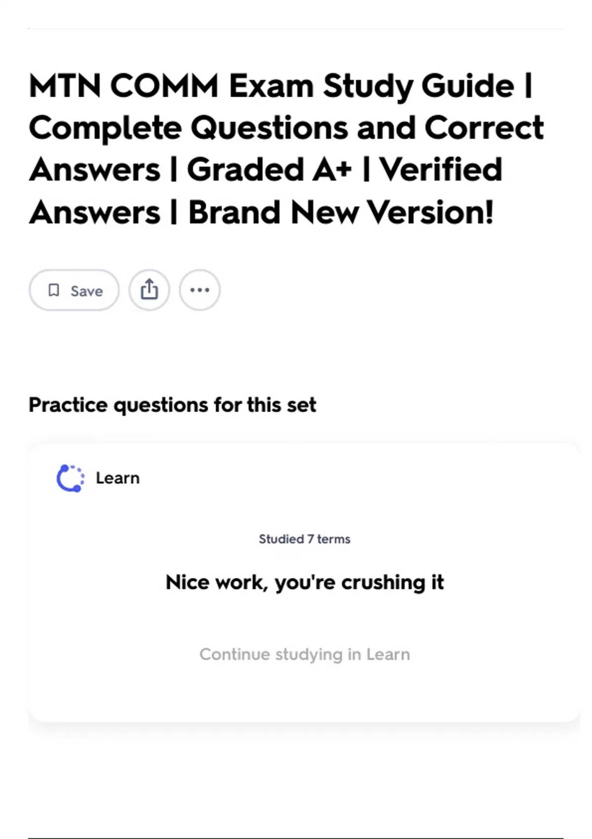 Continue studying in Learn