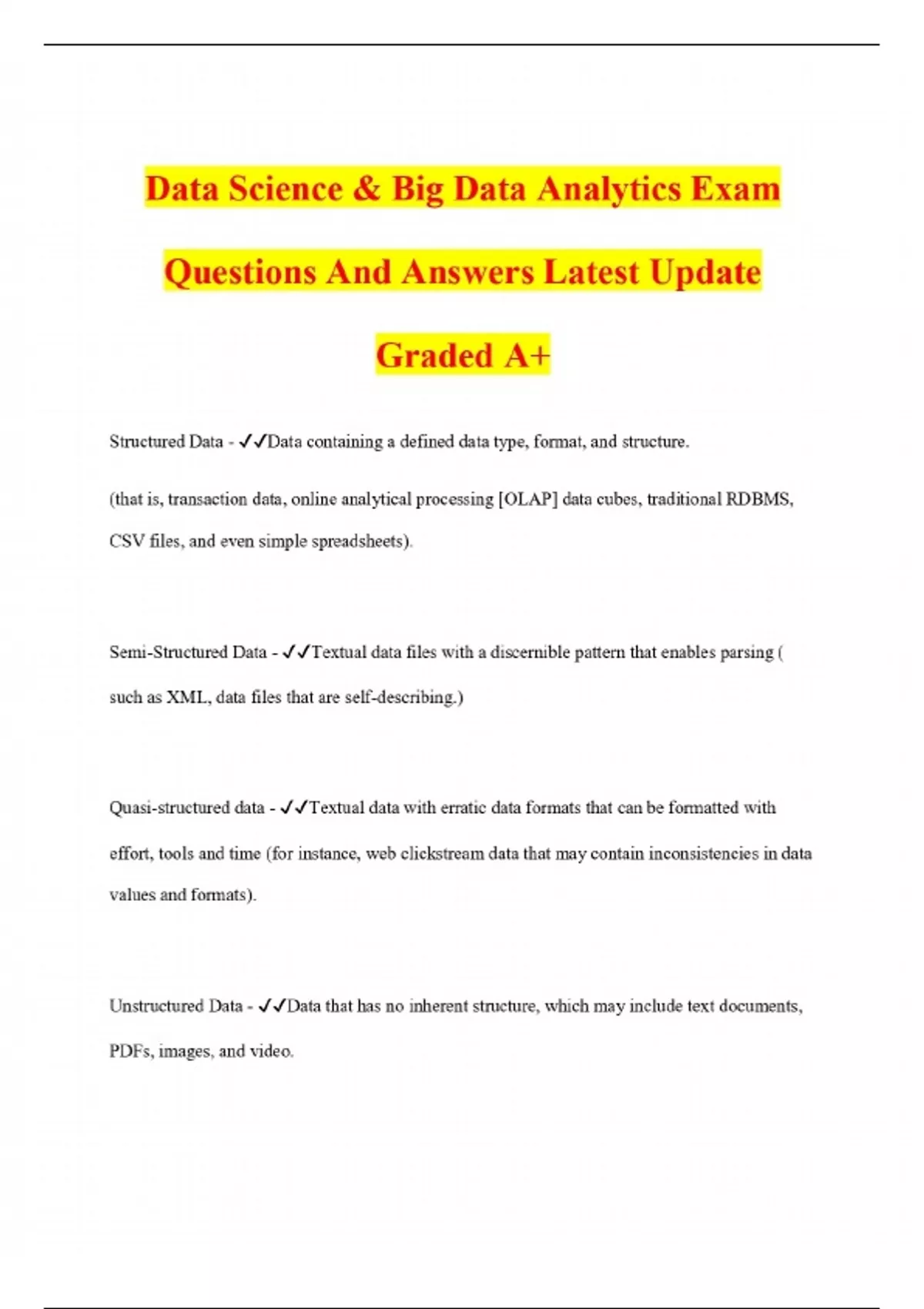 Data Science Bundled Exam Questions And Answers Latest Update Graded A+